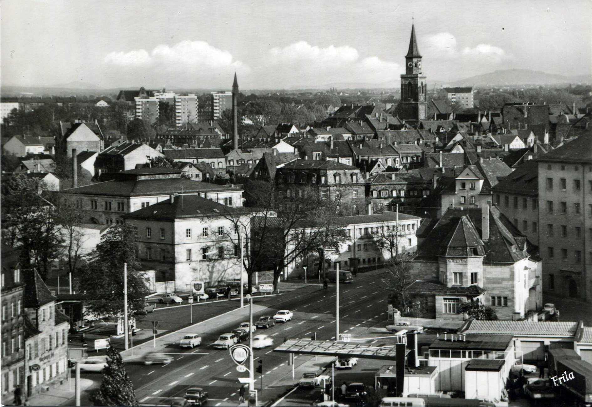 | Beschreibung | Ansichtskarte mit Blick von der Billinganlage Richtung Altstadt, links der ehem. Schlachthof, rechts die Foerstermühle, zwischen 1965 und 1970 | ||