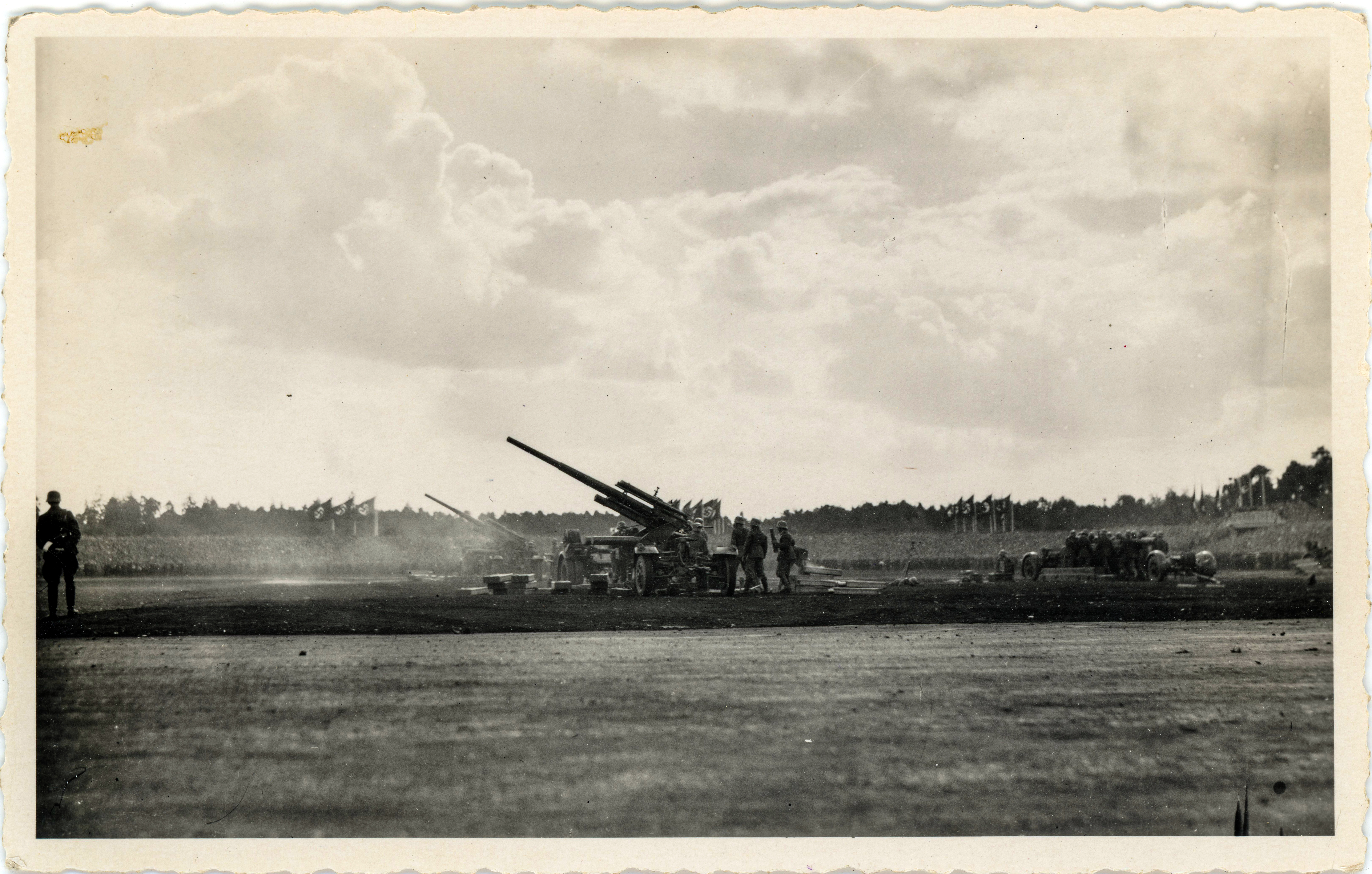 | Beschreibung | Demonstration von Flakbeschuss vor reichlich Publikum, Aufnahme vom Fürther Fotografen Karl Stöhr, ca. 1940 | ||
