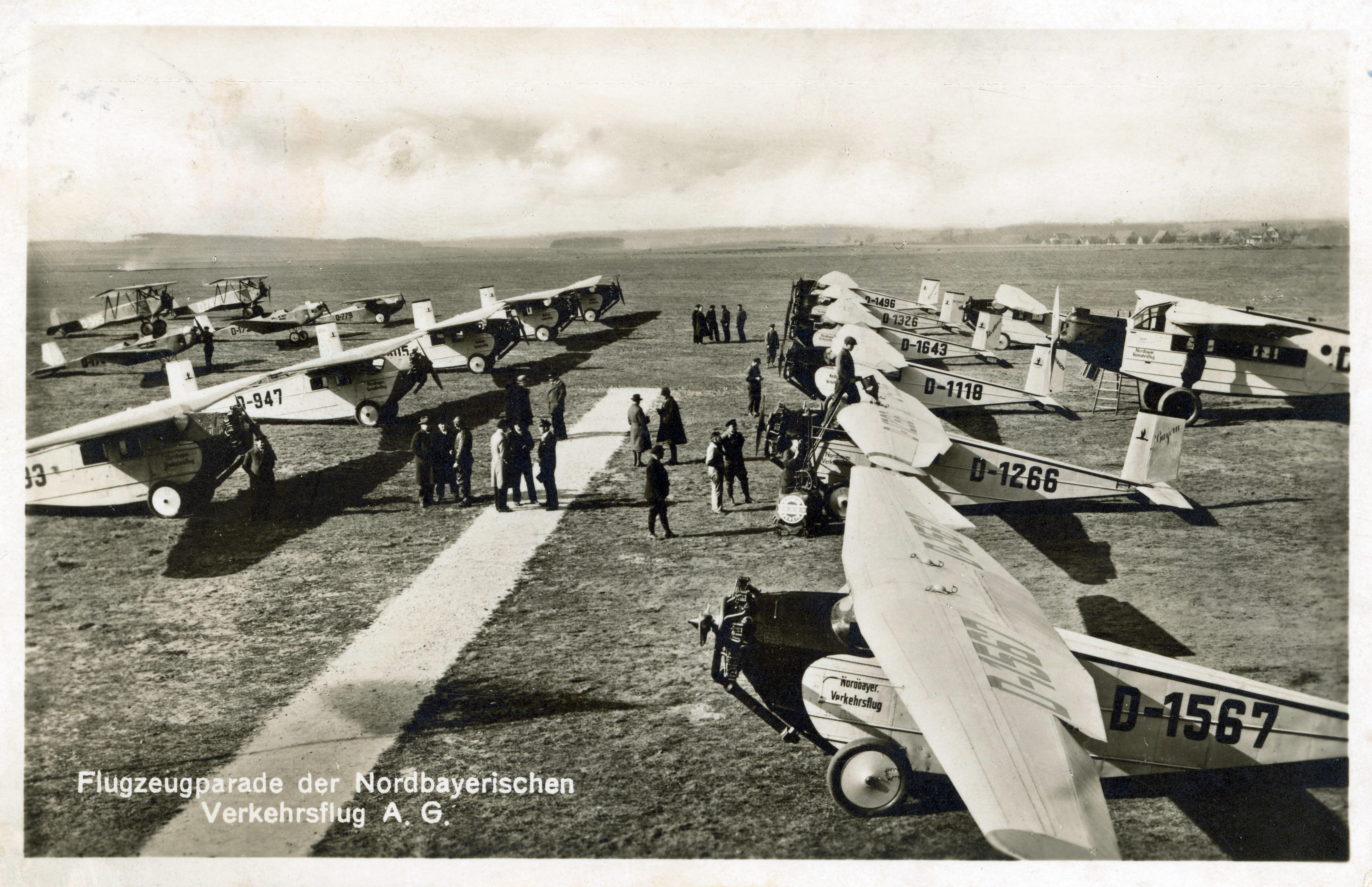 BeschreibungFlugzeugparade auf dem Flugplatz Fürth-Atzenhof, ca 1931