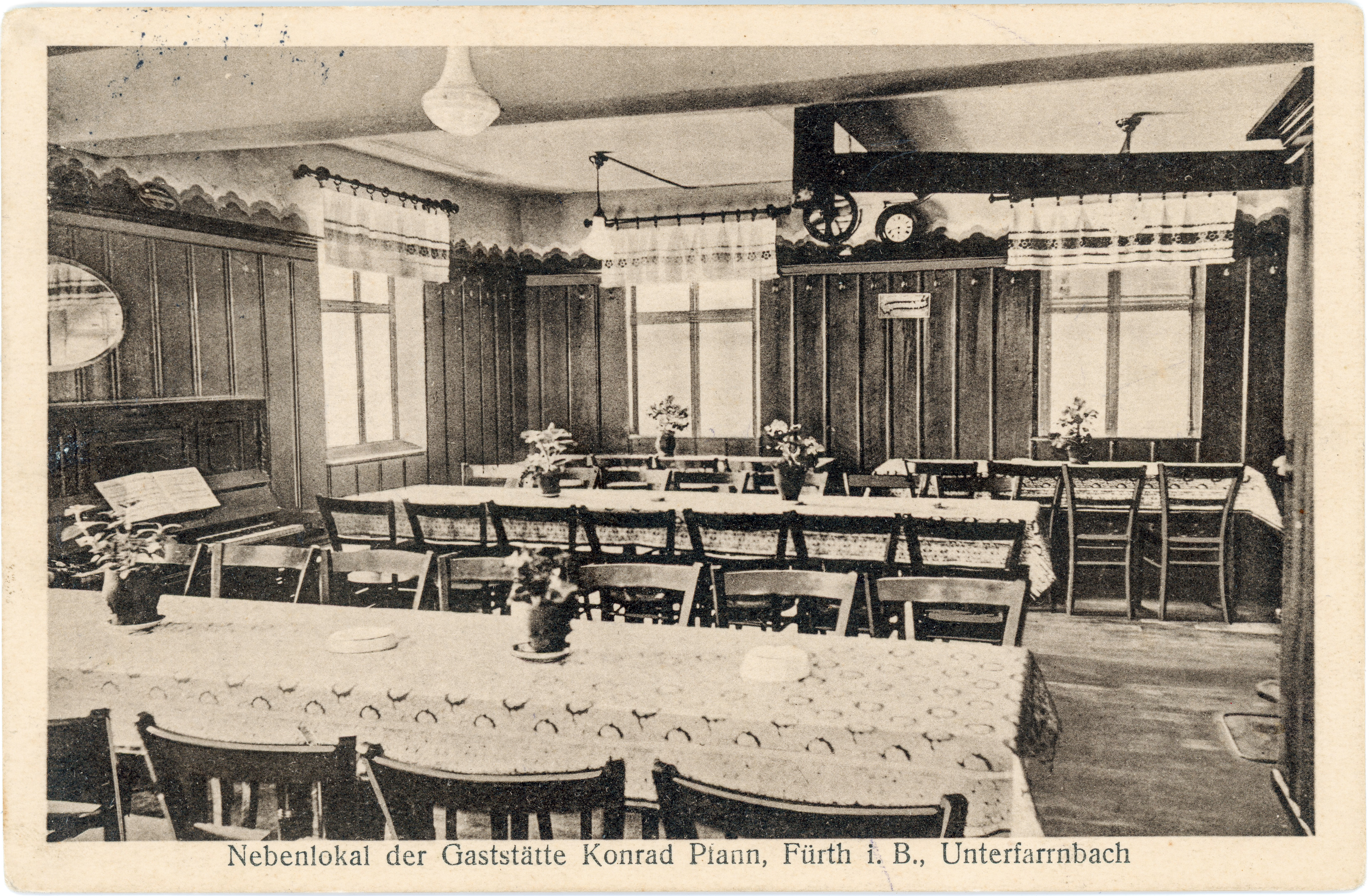 | Beschreibung | Gastraum in der Gaststätte Zum Grünen Tal, gel. ca. 1950 | ||