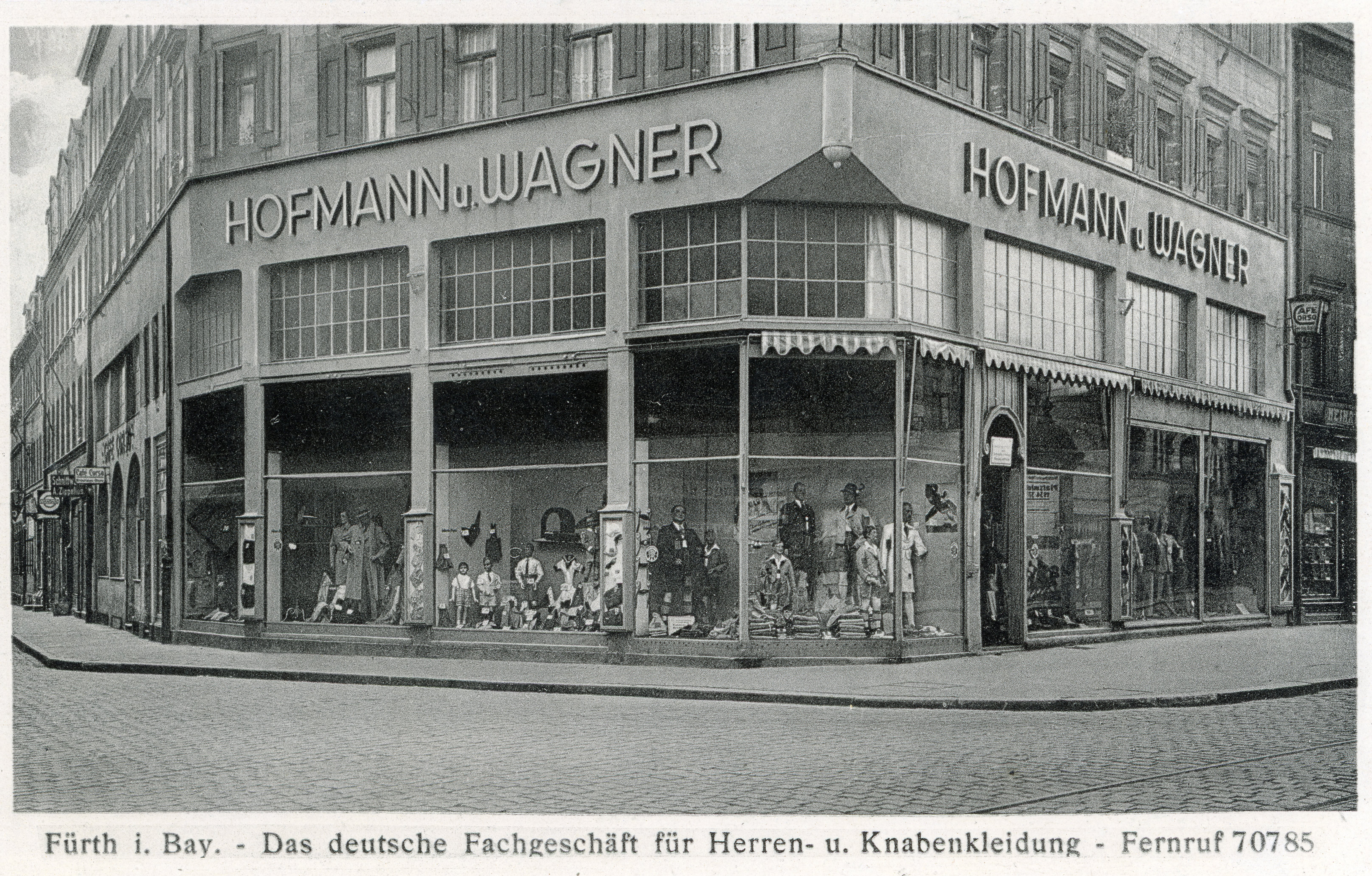 | Beschreibung | Deutsches Fachgeschäft für Herren- und Knabenkleidung Hofmann und Wagner in der Schwabacher Straße 11, ca. 1949 | ||