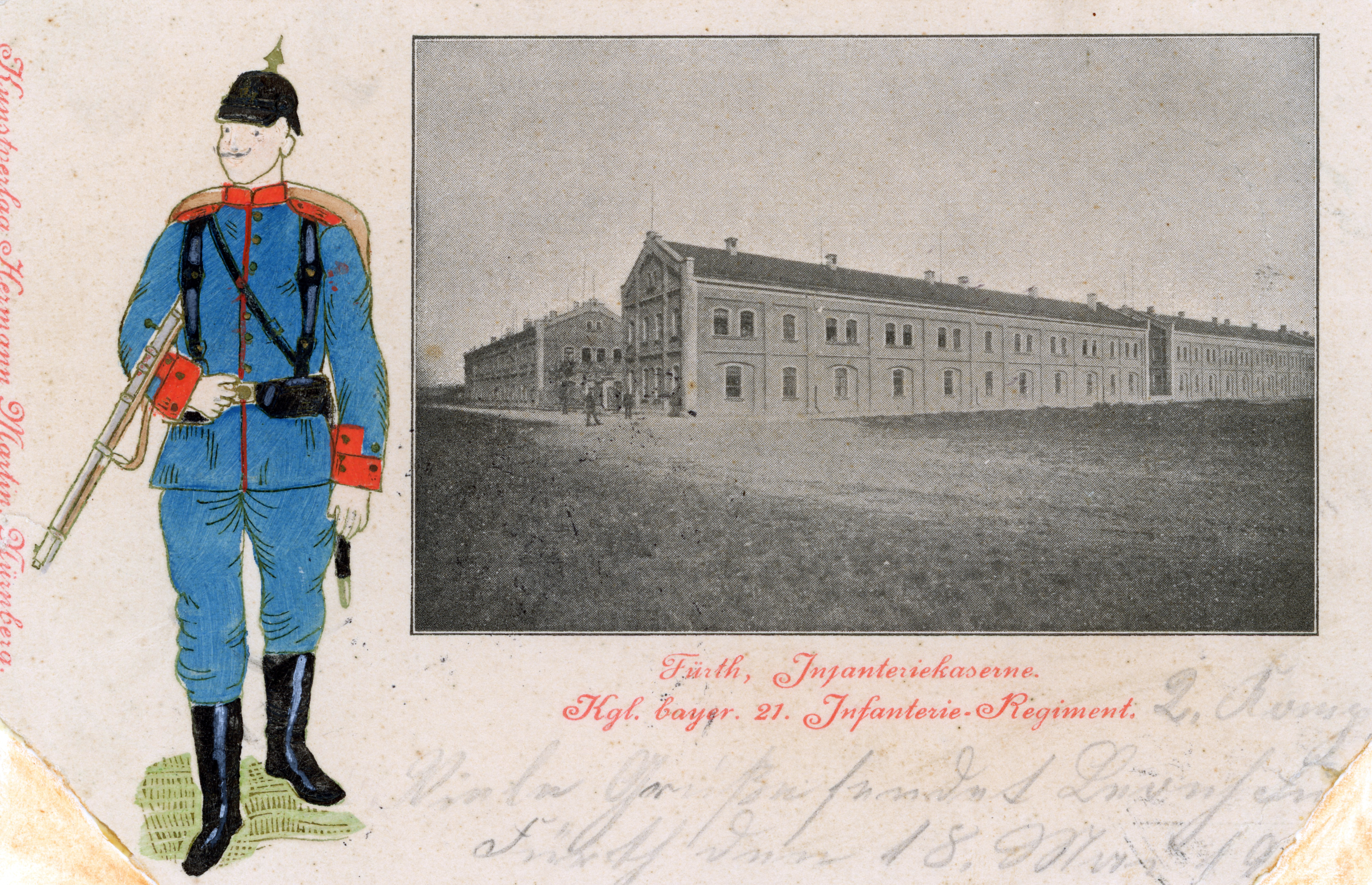 | Datei:AK Infanterie Kaserne gel 19 Mai 1900.jpg | |||