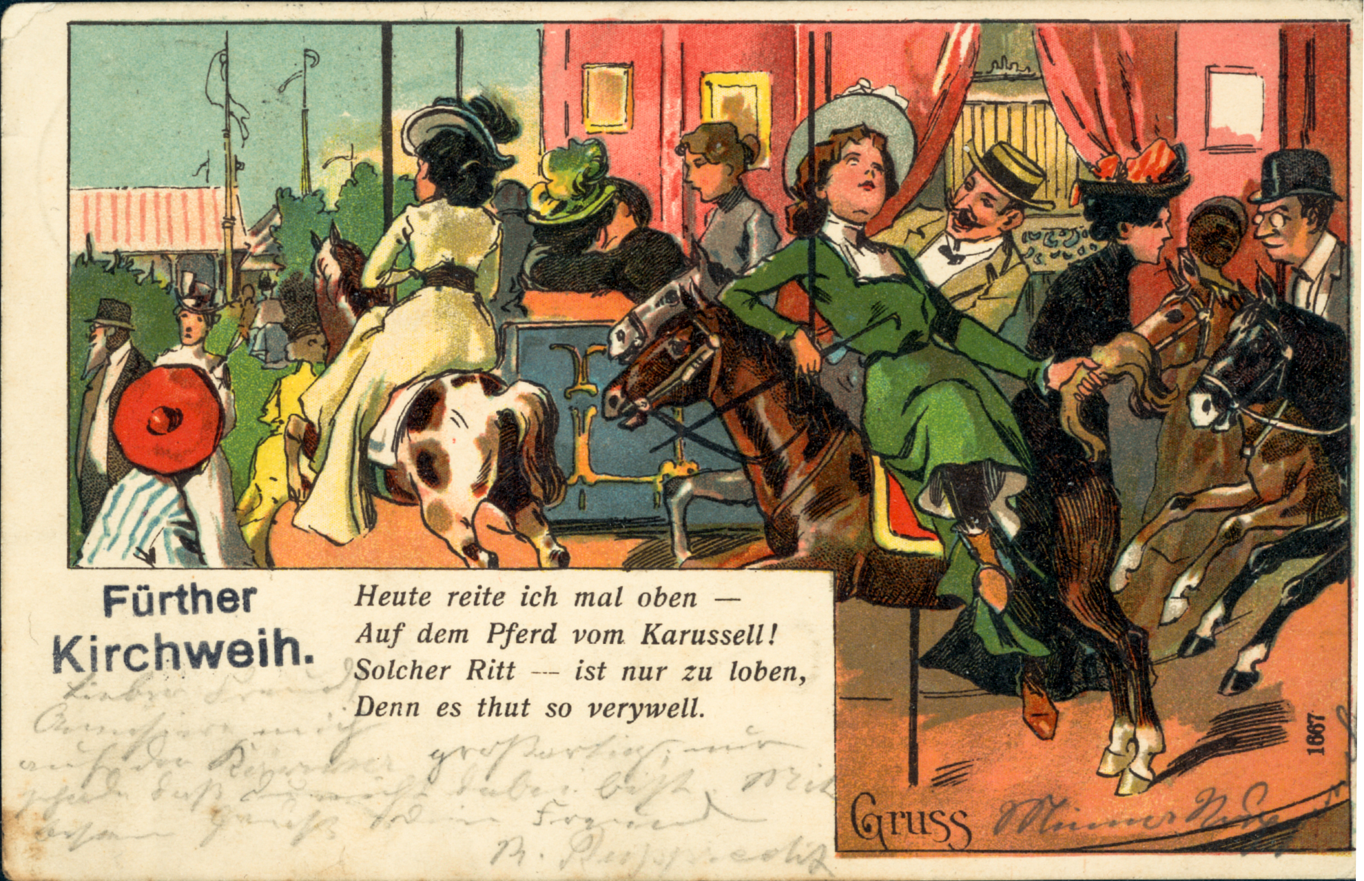 | Beschreibung | Gruß von der Fürther Kirchweih, historische Ansichtskarte, um 1900 | ||