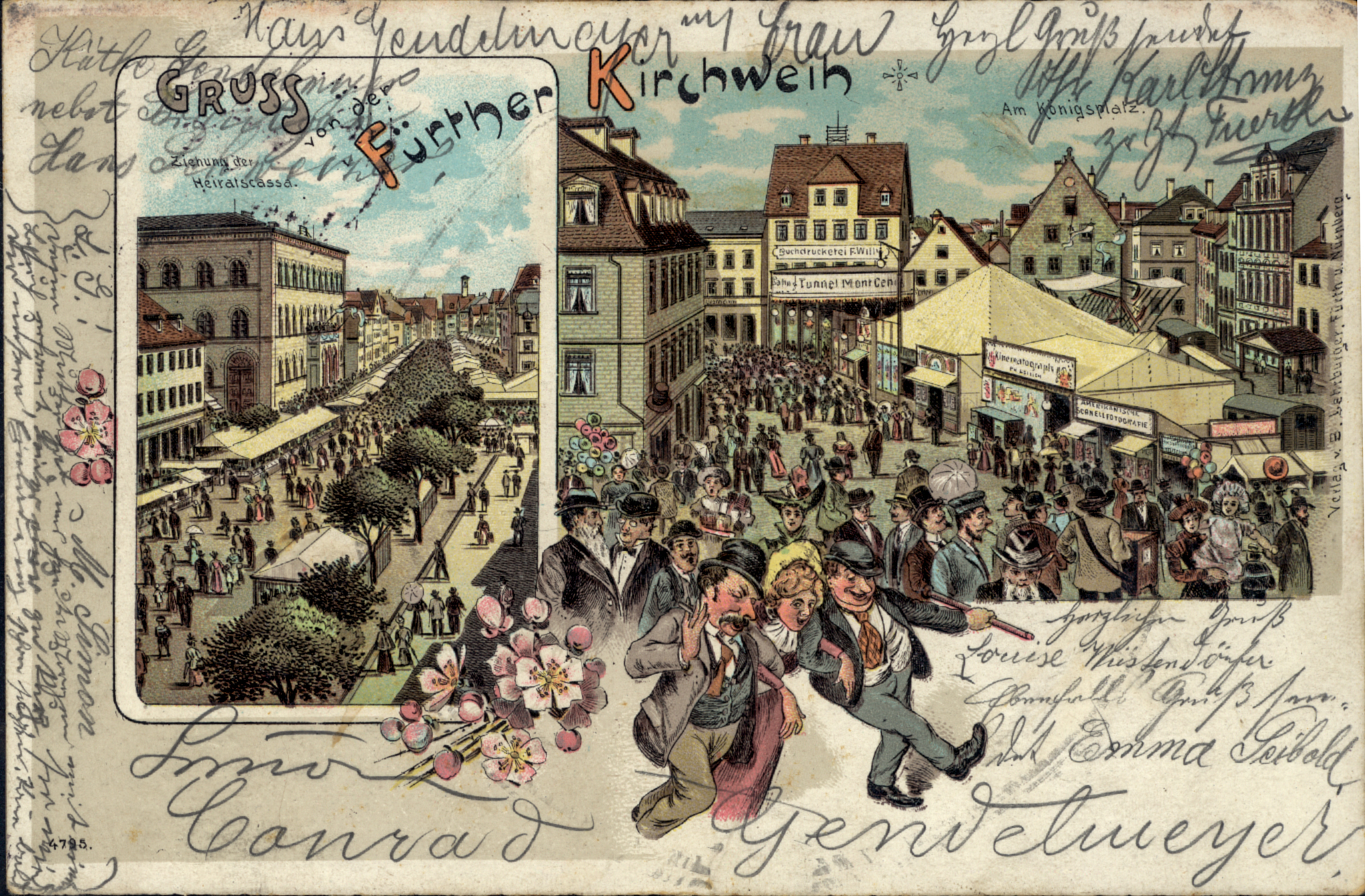 | Beschreibung | Gruß von der Fürther Kirchweih, historische Ansichtskarte, um 1900 | ||