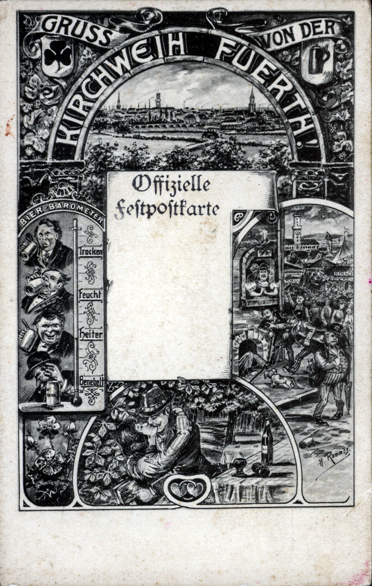 | Beschreibung | Gruß von der Fürther Kirchweih, historische Ansichtskarte, um 1900 | ||