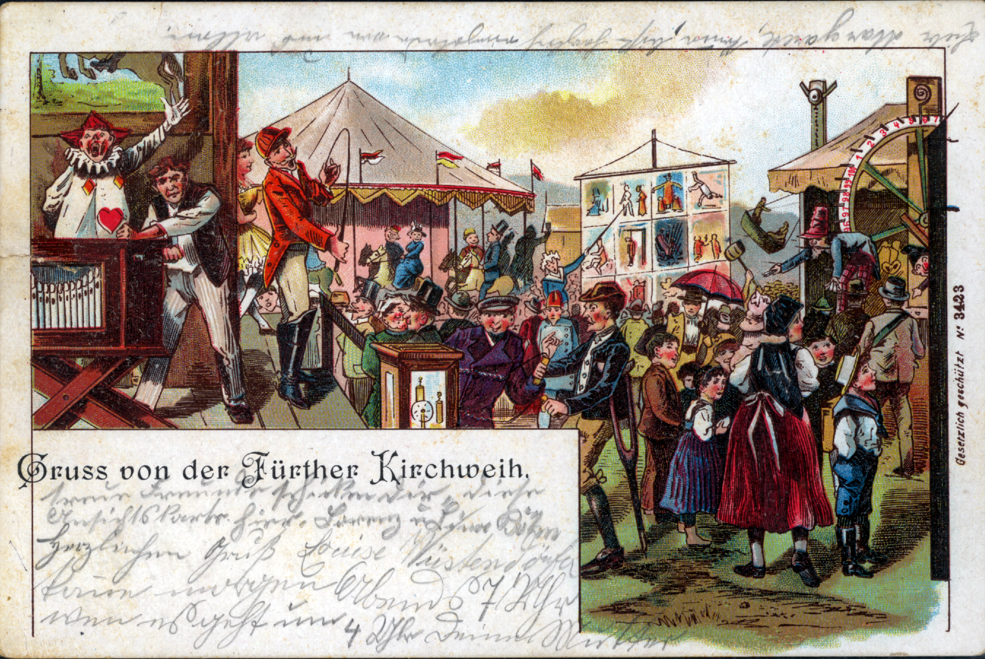 | Beschreibung | Gruß von der Fürther Kirchweih, historische Ansichtskarte, um 1900 | ||