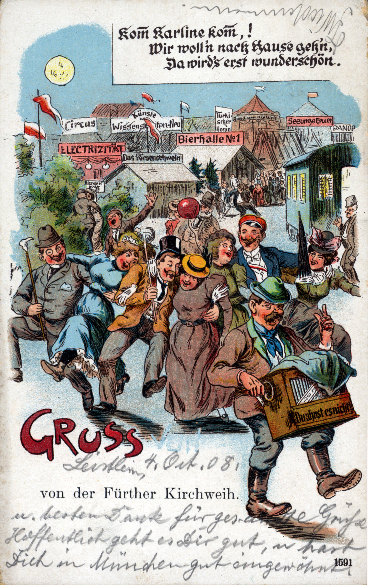 | Beschreibung | Gruß von der Fürther Kirchweih, historische Ansichtskarte, 1908 | ||