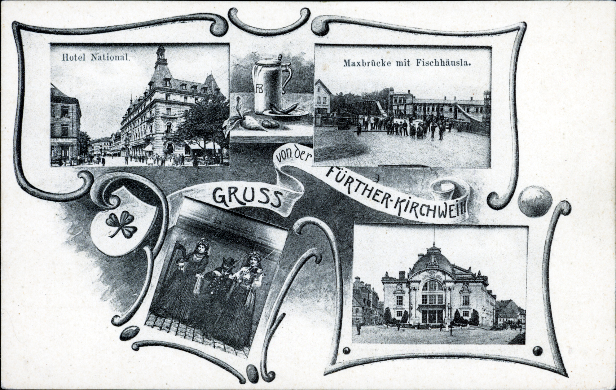 | Beschreibung | Gruß von der Fürther Kirchweih, historische Ansichtskarte, um 1910 | ||