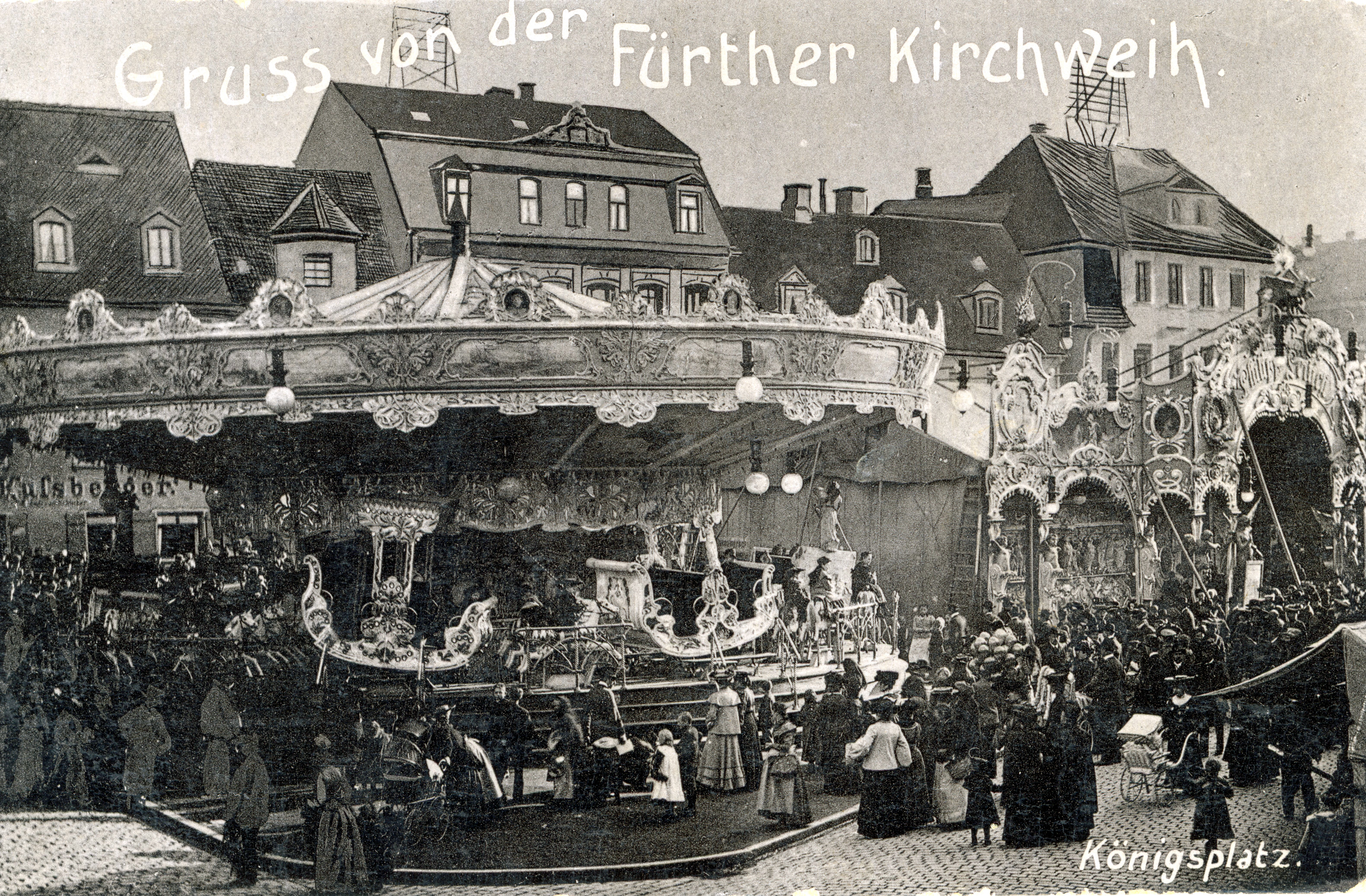 | Dateiinfo (Bild-Unterschrift und Info-Box, automatisch erstellt) | Gruß von der Fürther Kirchweih, historische Ansichtskarte, Fotocollage vom Dreikönigsplatz, um 1910 Erstellungsdatum: 1910<br>Lizenz: cc-by-sa-3.0 | ||