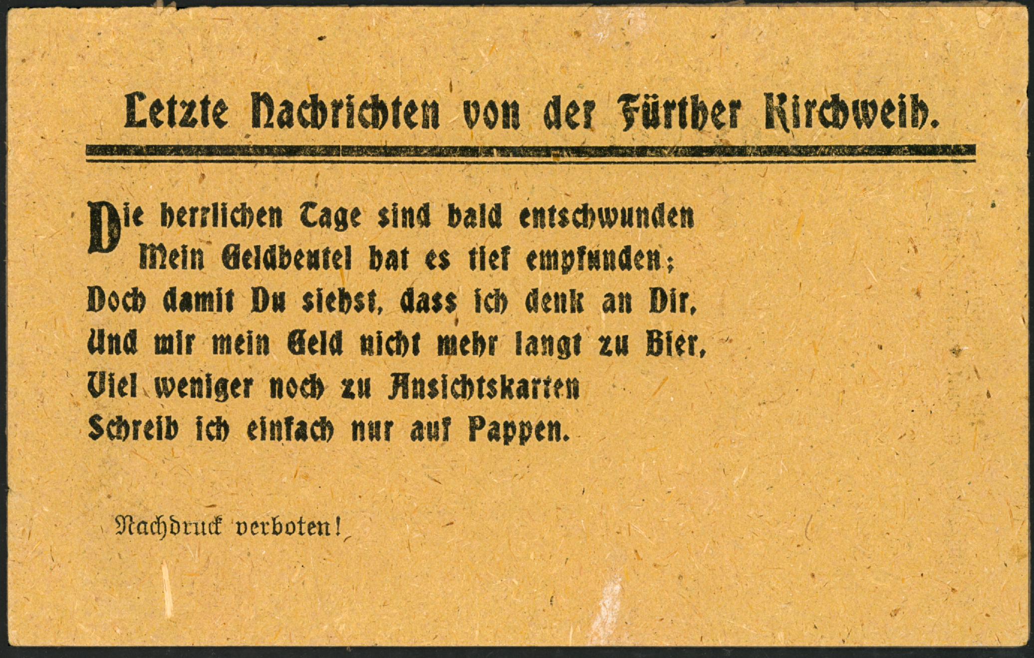 | Beschreibung | Gruß von der Fürther Kirchweih, historische Ansichtskarte bzw. Scherzkarte, um 1920 | ||