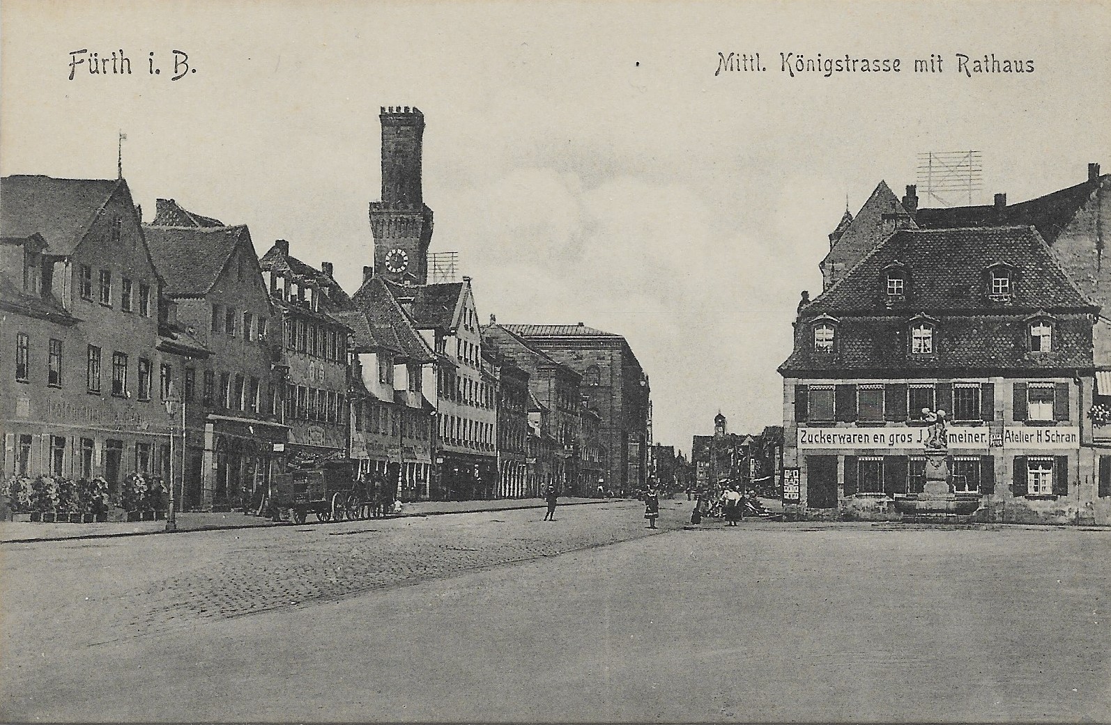 | Dateiinfo (Bild-Unterschrift und Info-Box, automatisch erstellt) | Historische Ansichtskarte - Königstraße mit Rathaus, evtl. 1910 Urheber: B. Lehrburger, Nürnberg<br>Erstellungsdatum: 1910<br>Lizenz: cc-by-sa-3.0 | ||