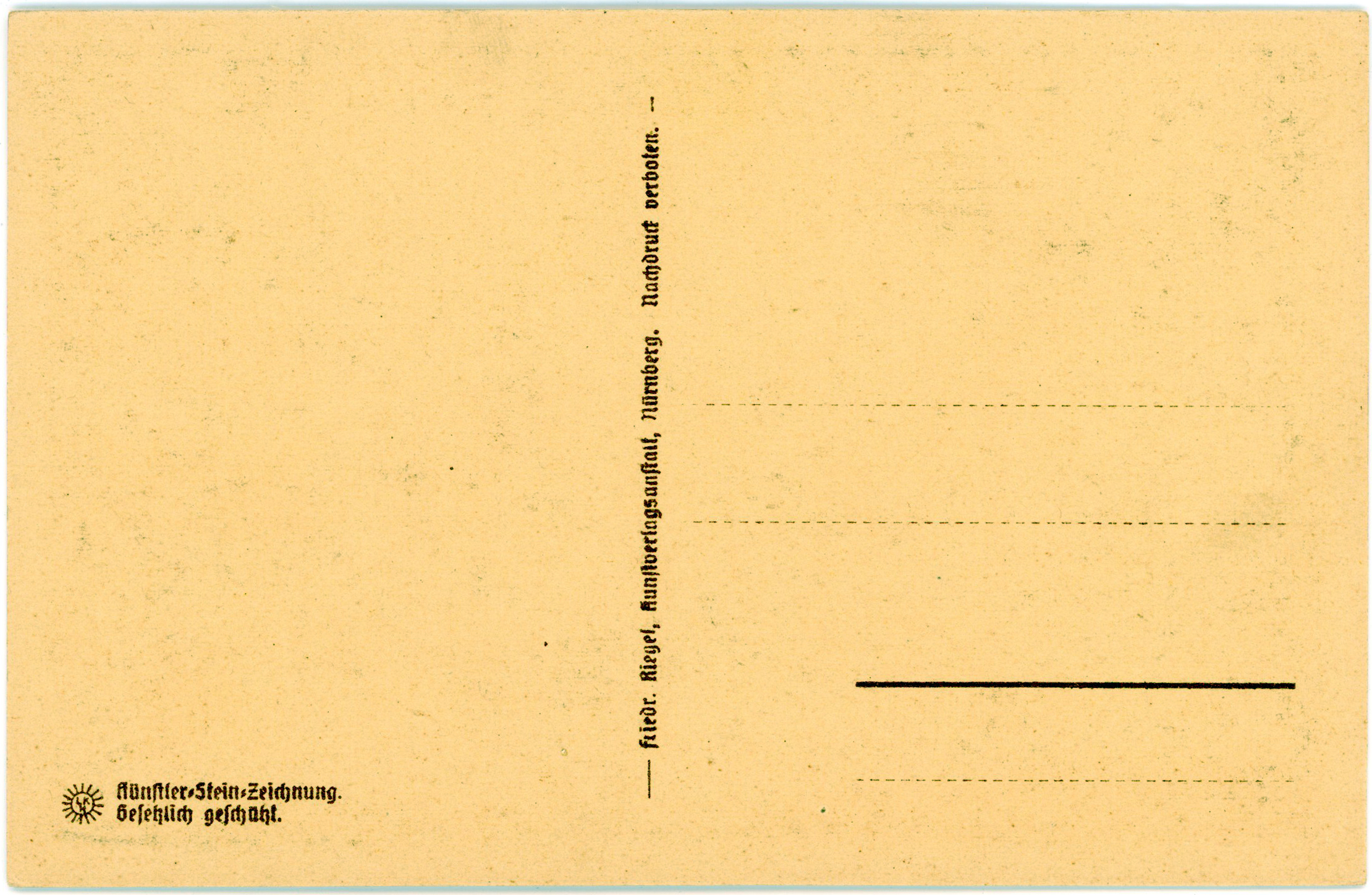 Rückseite der Ansichtskarten aus der Reihe der Künstler-Steinzeichnung von der Kunstverlagsanstalt ... Rückseite der Ansichtskarten aus der Reihe der Künstler-Steinzeichnung von der Kunstverlagsanstalt von Friedrich Riegel aus Nürnberg mit Fürth-Motiven, ca. 1920<br>Urheber: Friedrich Riegel<br><br>Lizenz: CC BY-SA 4.0