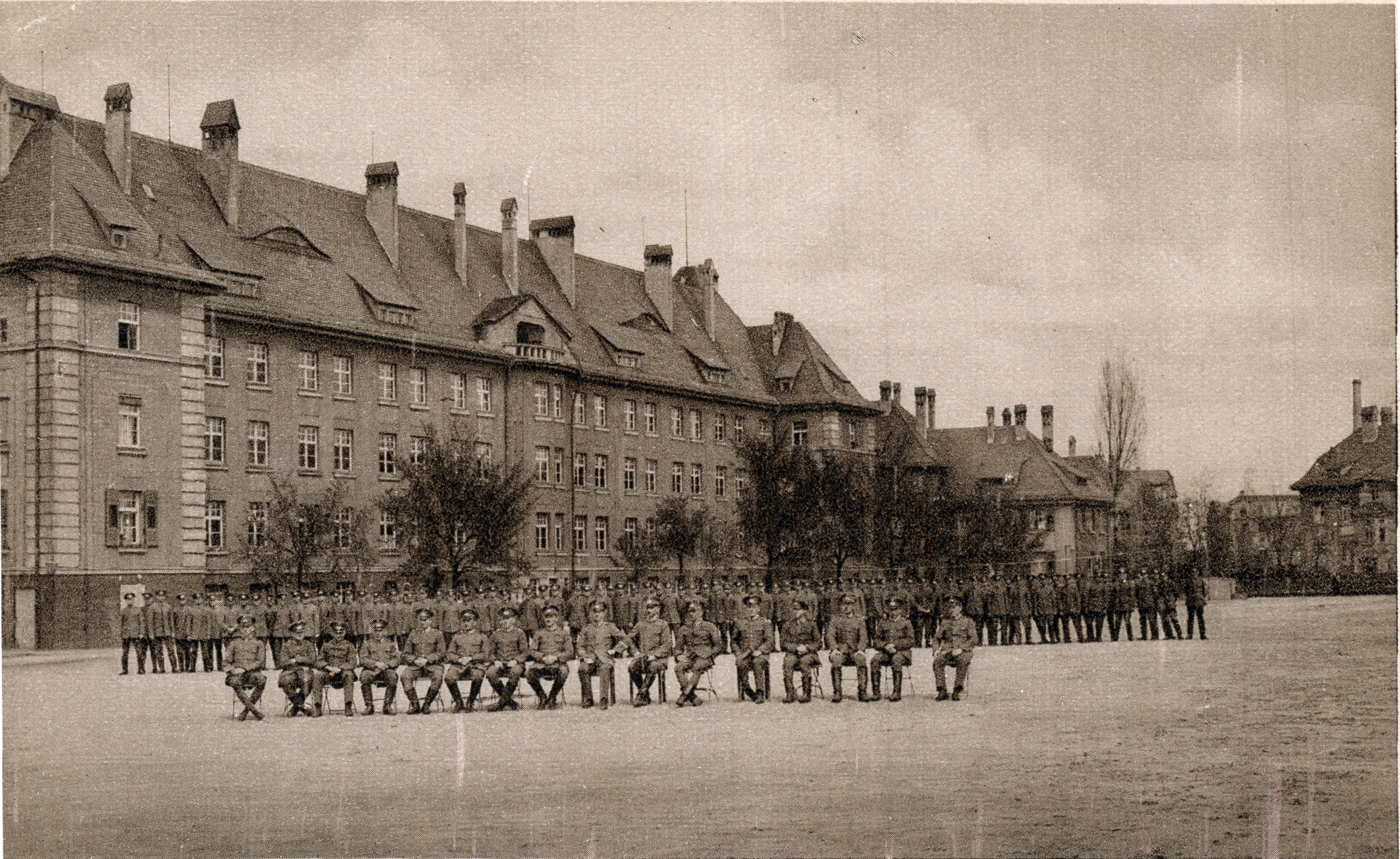| Dateiinfo (Bild-Unterschrift und Info-Box, automatisch erstellt) | Train-Kaserne mit Minenwerfer-Kompanie 21 Fürth, ngl. ca 1915 Urheber: unbekannt<br><br>Lizenz: CC BY-SA 4.0 | ||