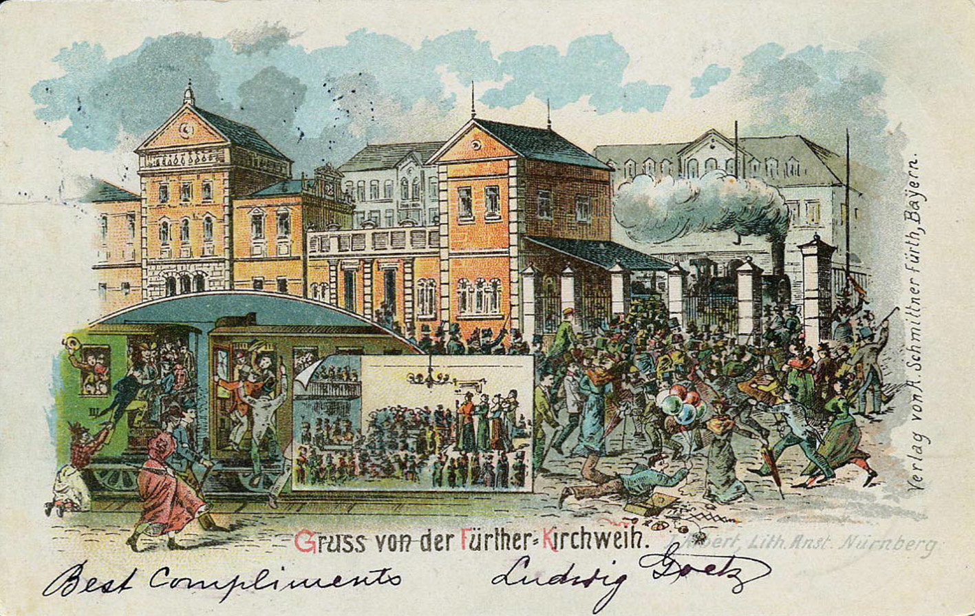 | Beschreibung | Gruß von der Fürther Kirchweih, historische Ansichtskarte, 1897 | ||