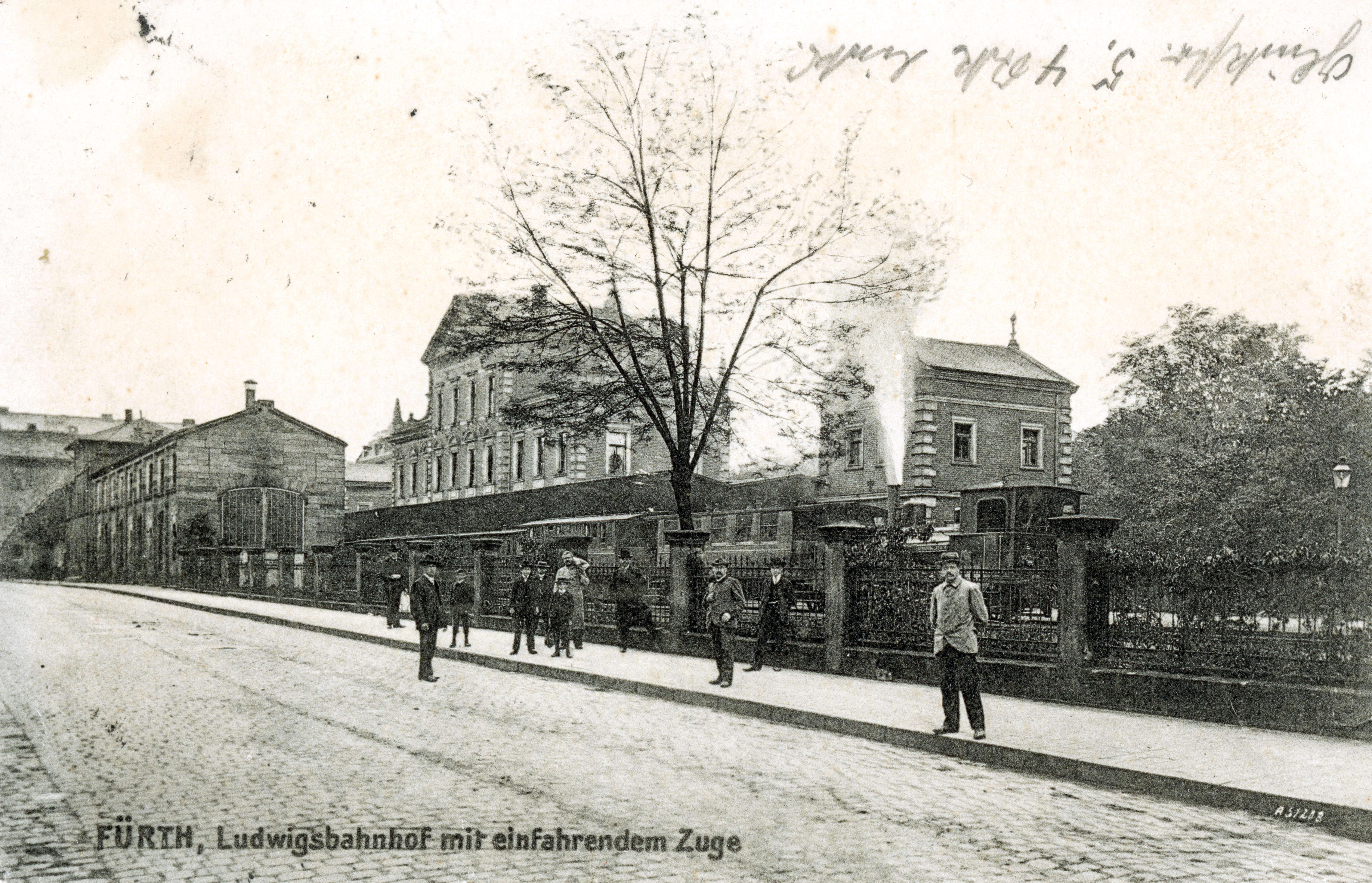 | Beschreibung | Ansichtskarte vom ehem. Ludwigsbahnhof mit einfahrendem Zug, gel. 1908 | ||