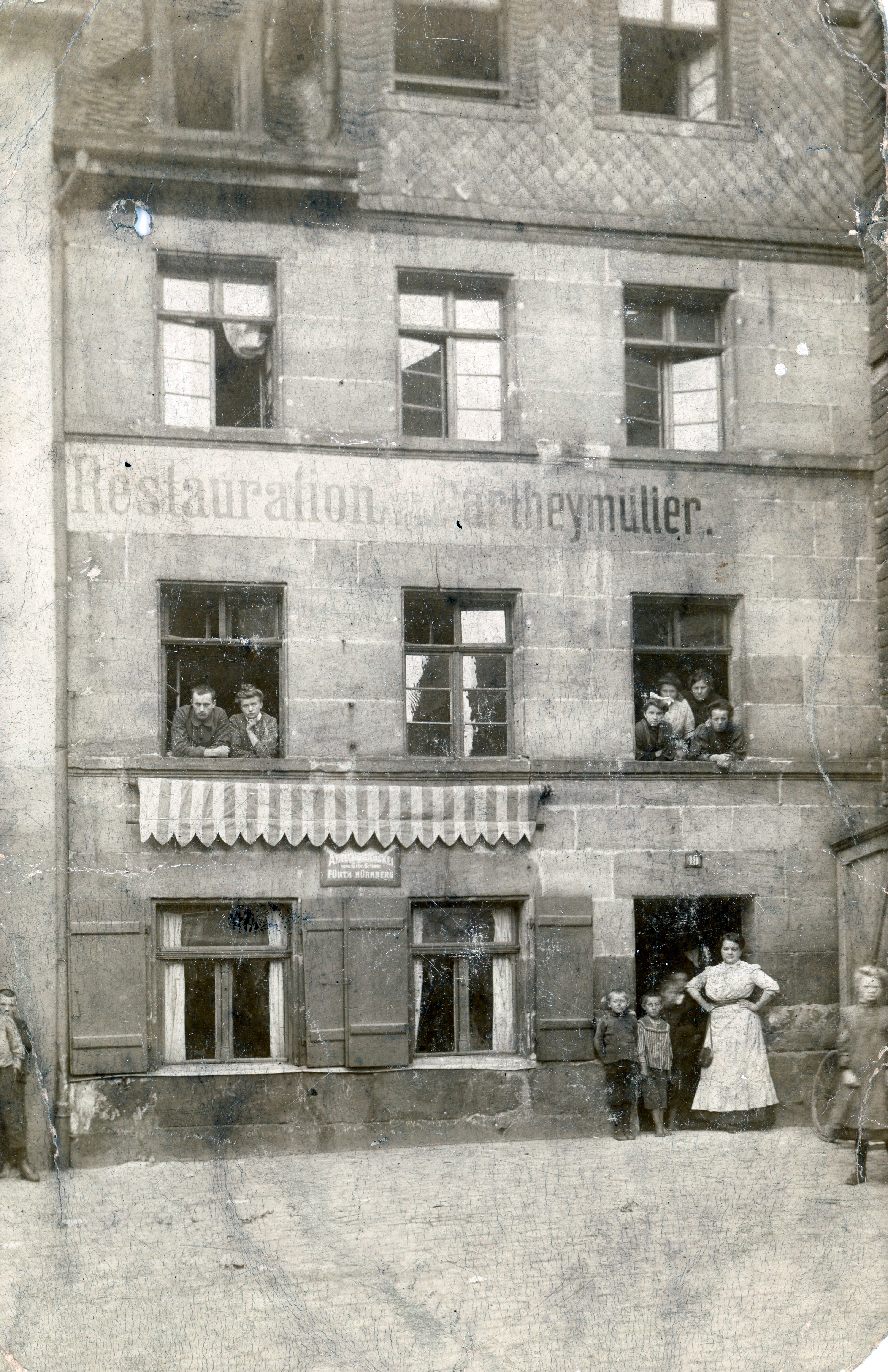 | Beschreibung | Ansichtskarte von der Restauration Partheymüller in der ehem. Mohrenstraße 10, ngl. ca. 1900 | ||