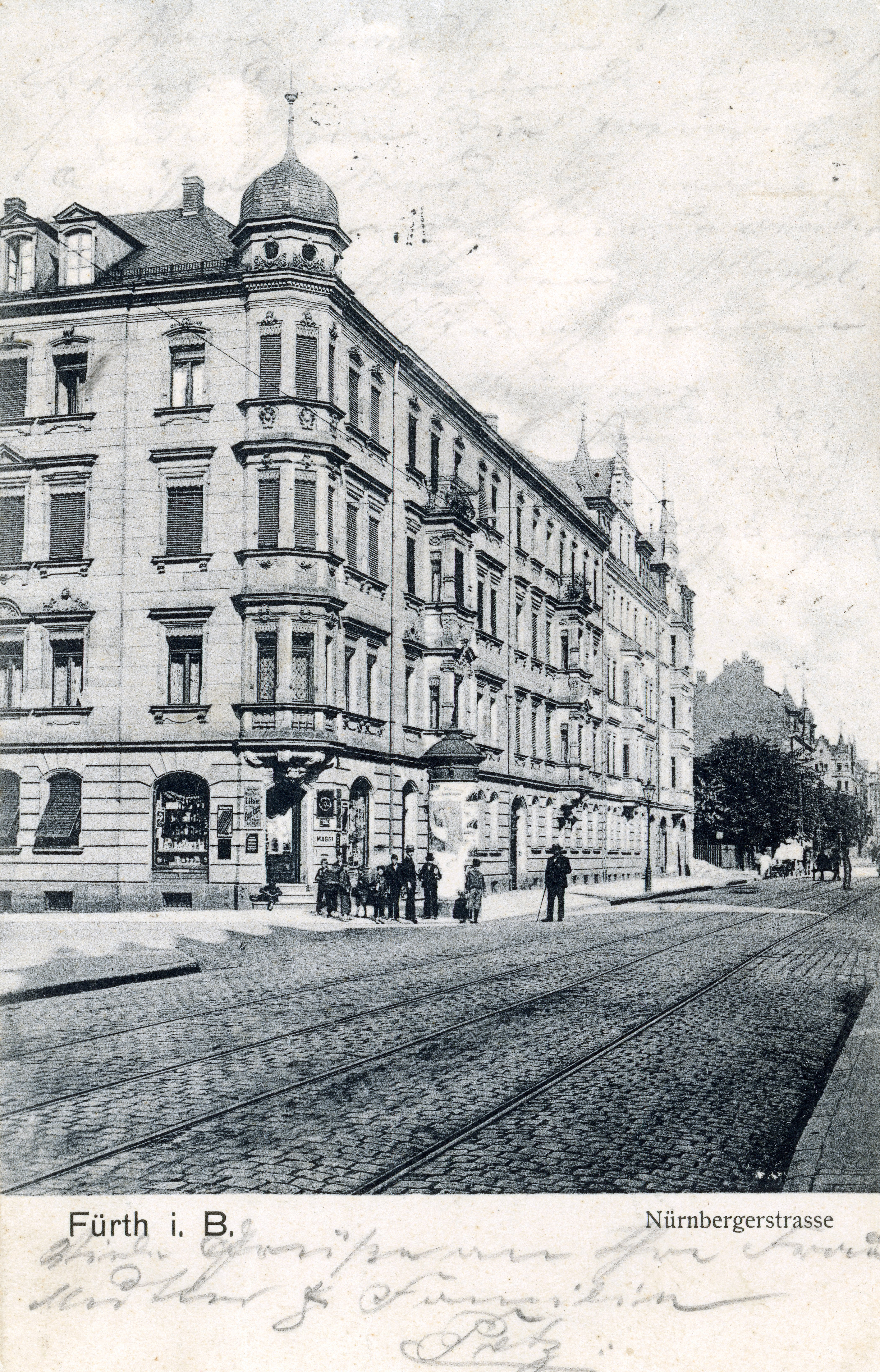 | Beschreibung | Blick in die Nürnberger Straße, gel. Mai 1908 | ||