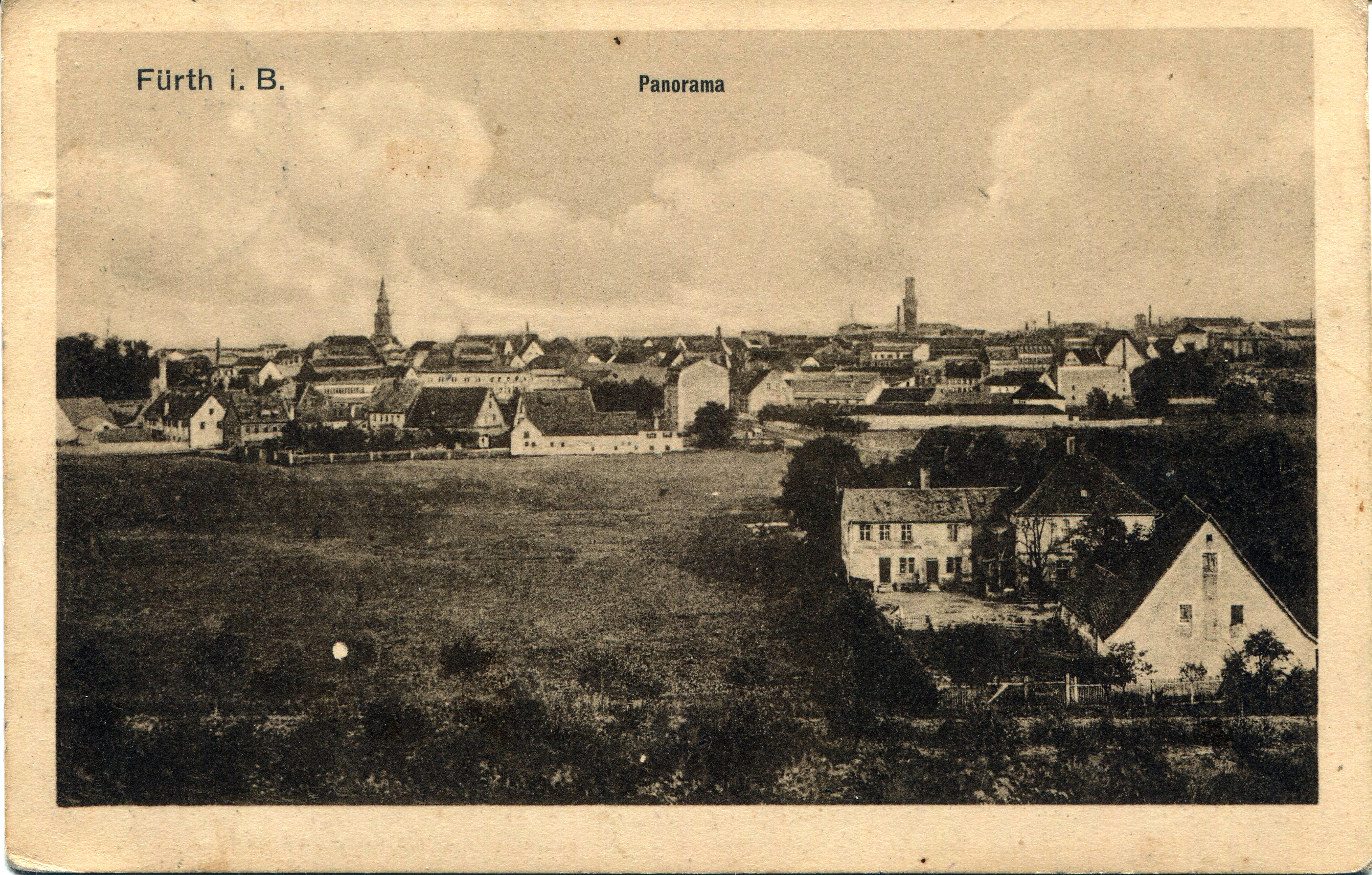 BeschreibungBlick von der Schwand nach Osten, im Vordergrund Billinganlage 12 - Bildmitte Würzburger Str. 10, rechts im Bild Foerstermühle, dahinter Rathaus, gel. 1915