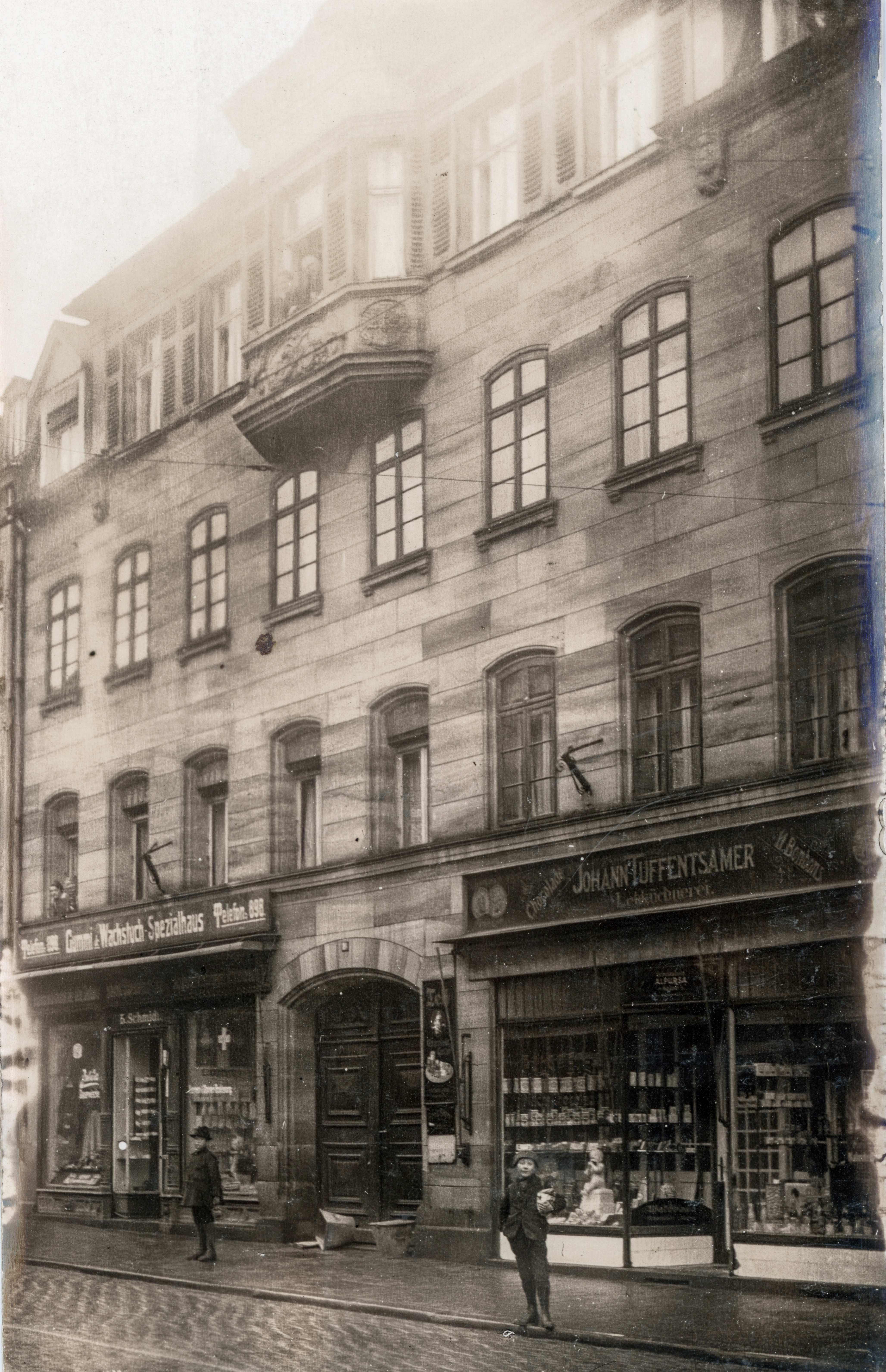 | Dateiinfo (Bild-Unterschrift und Info-Box, automatisch erstellt) | Ansichtskarte mit Lebküchnerei Tuffentsamer in der Schwabacher Straße 39, ngl. ca. 1930 Urheber: unbekannt<br><br>Lizenz: CC BY-SA 4.0 | ||