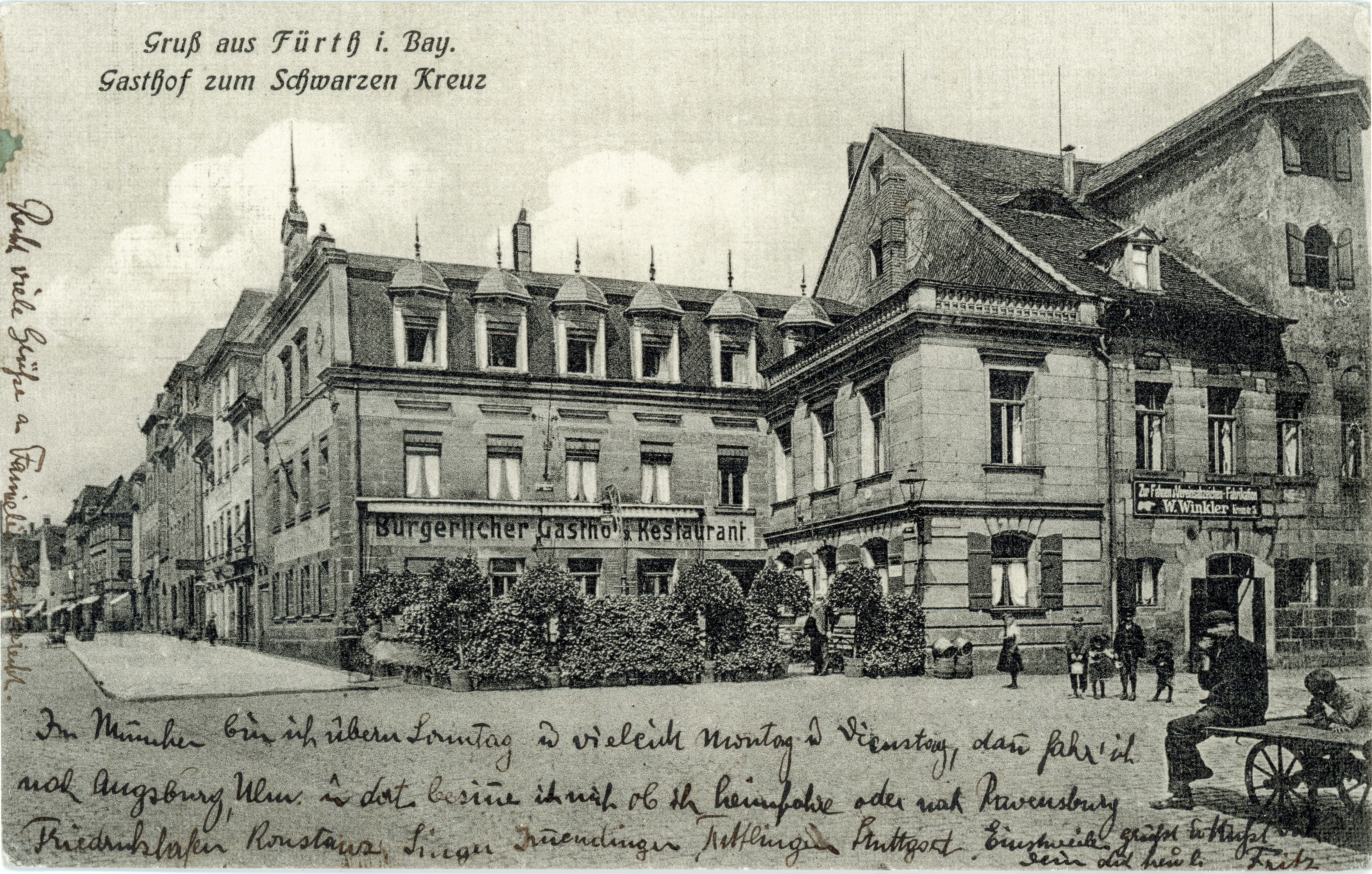 | Beschreibung | Ansichtskarte der Gaststätte Schwarzes Kreuz, gel. 1923 | ||