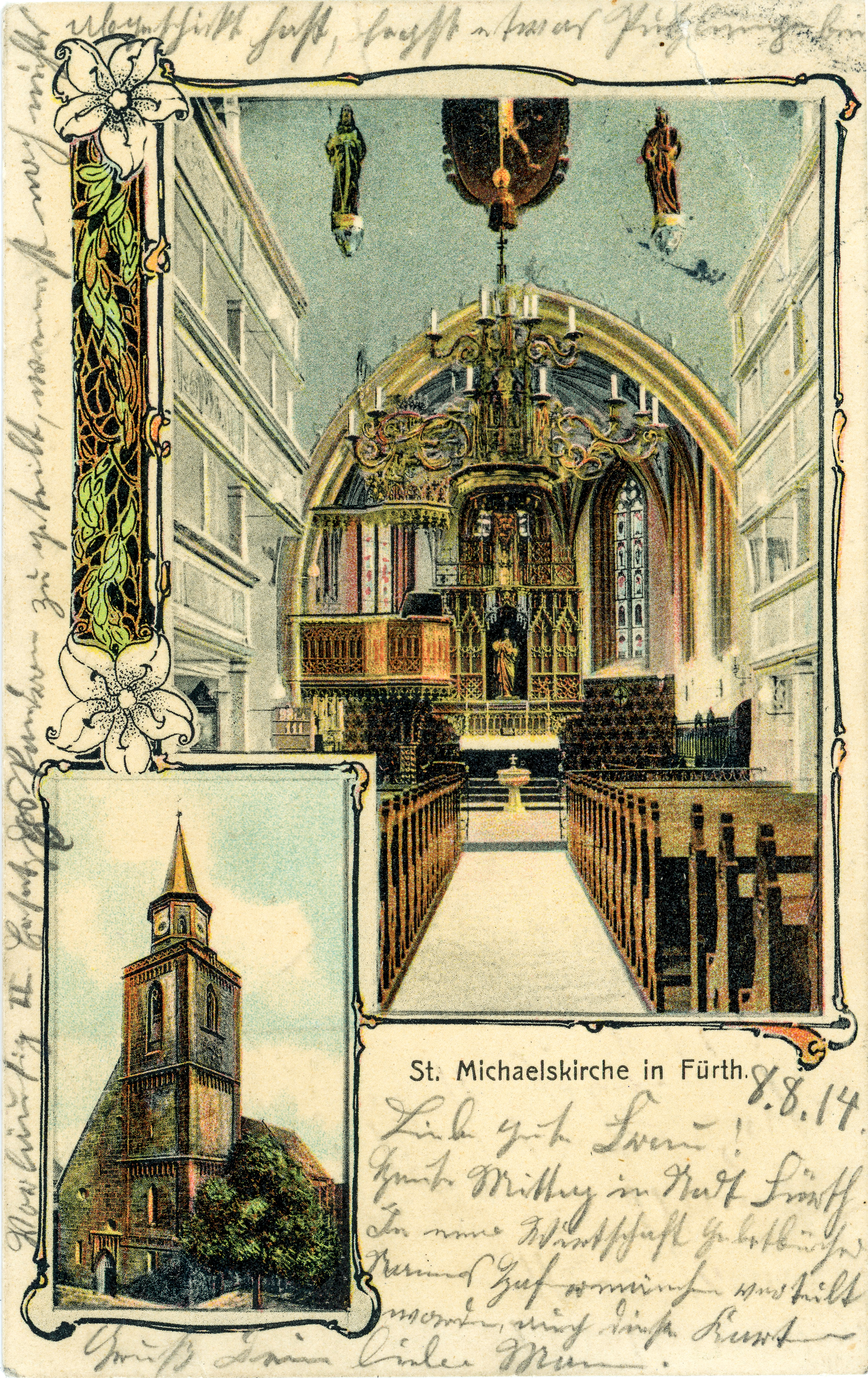 | Datei:AK St Michaelskirche gel Aug 1914.jpg | |||