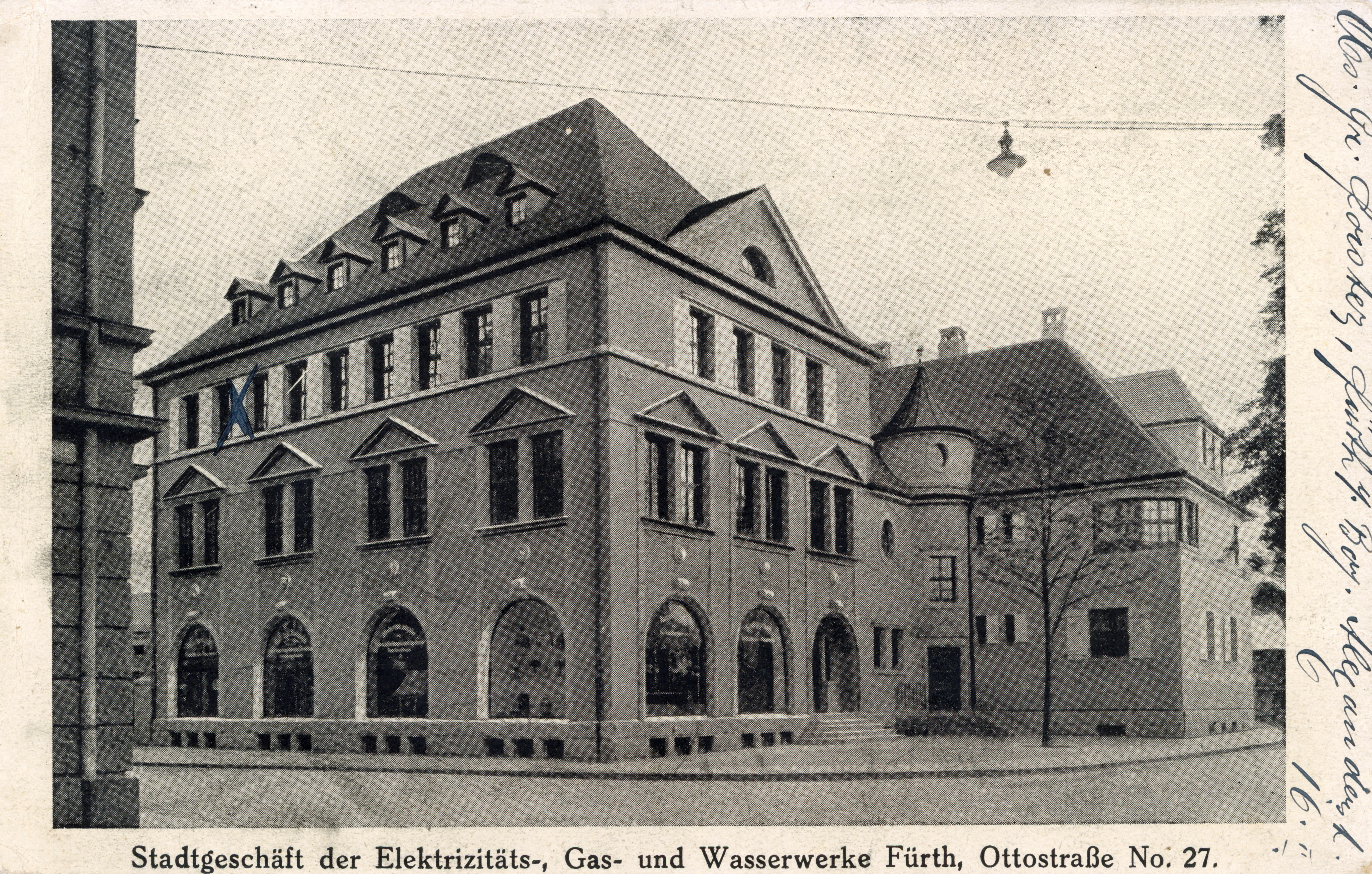 | Dateiinfo (Bild-Unterschrift und Info-Box, automatisch erstellt) | Ansichtskarte vom Stadtgeschäft der Elektrizität Ottostraße 27, gel. 10. Februar 1915 Urheber: unbekannt<br><br>Lizenz: CC BY-SA 4.0 | ||