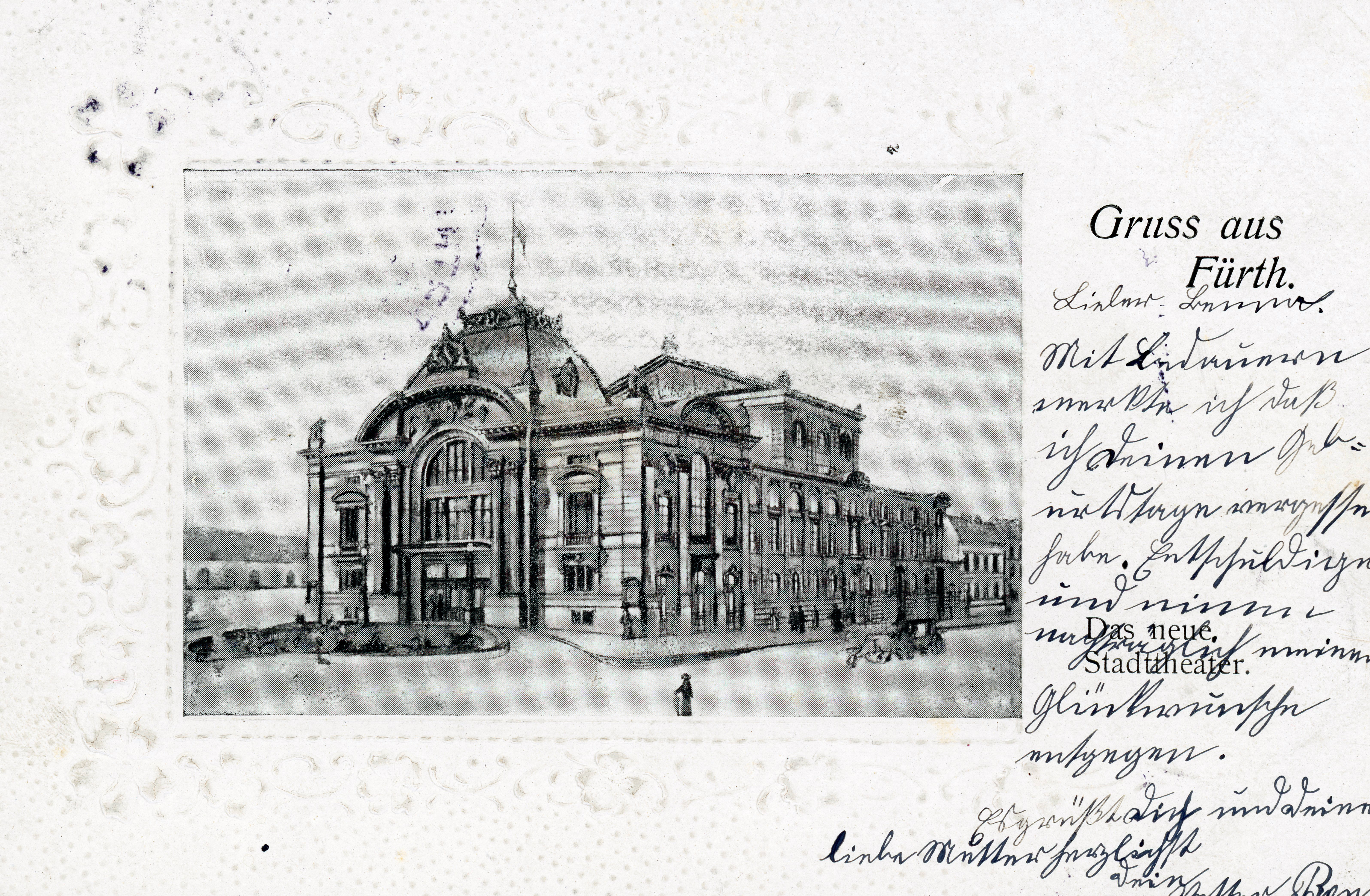 | Beschreibung | Ansichtskarte zur Eröffnung des Stadttheaters, gel. Nov 1902 | ||