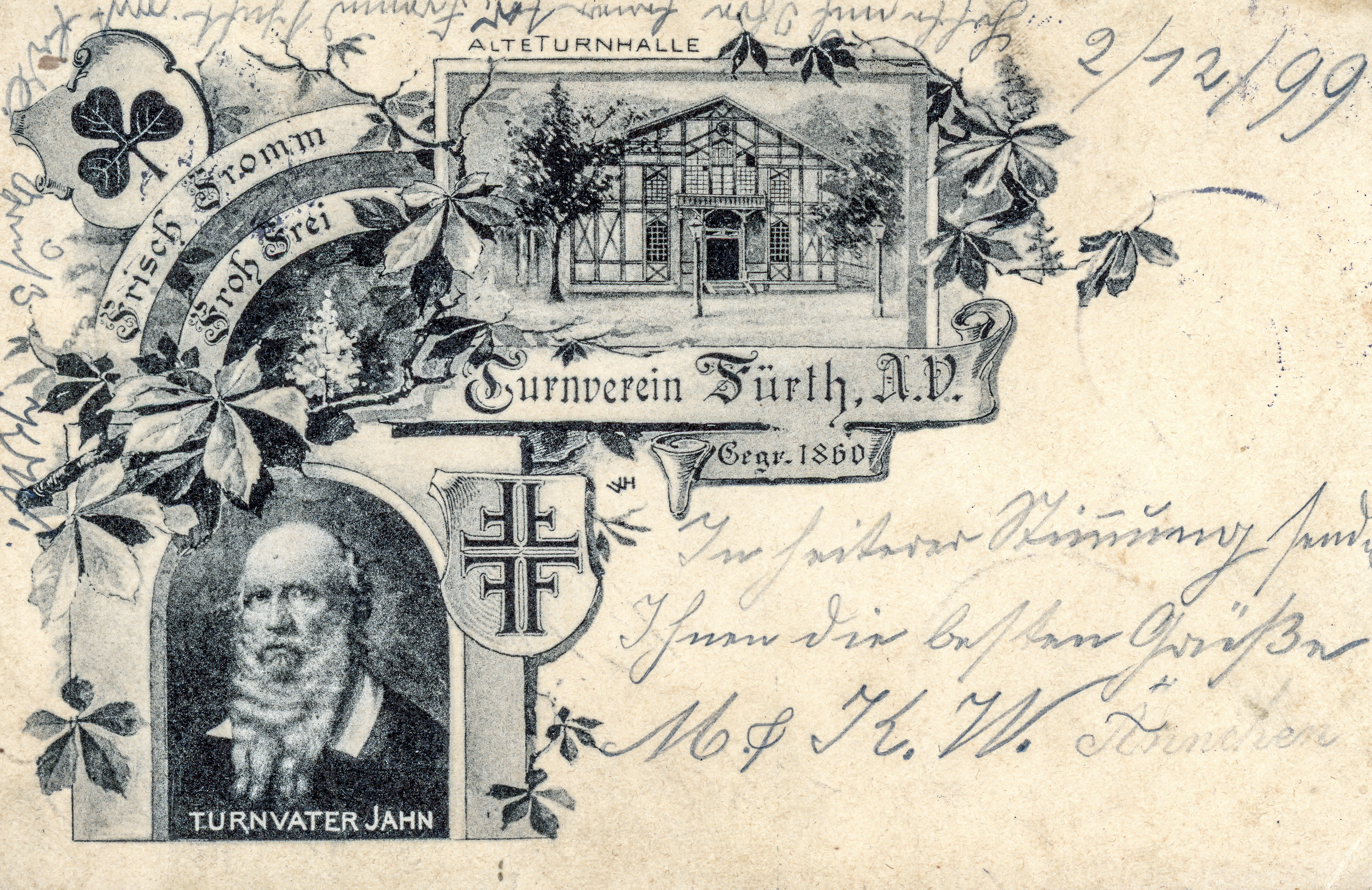 | Beschreibung | Ansichtskarte des Turnvereins Fürth geg. 1860, gel. 1899 | ||
