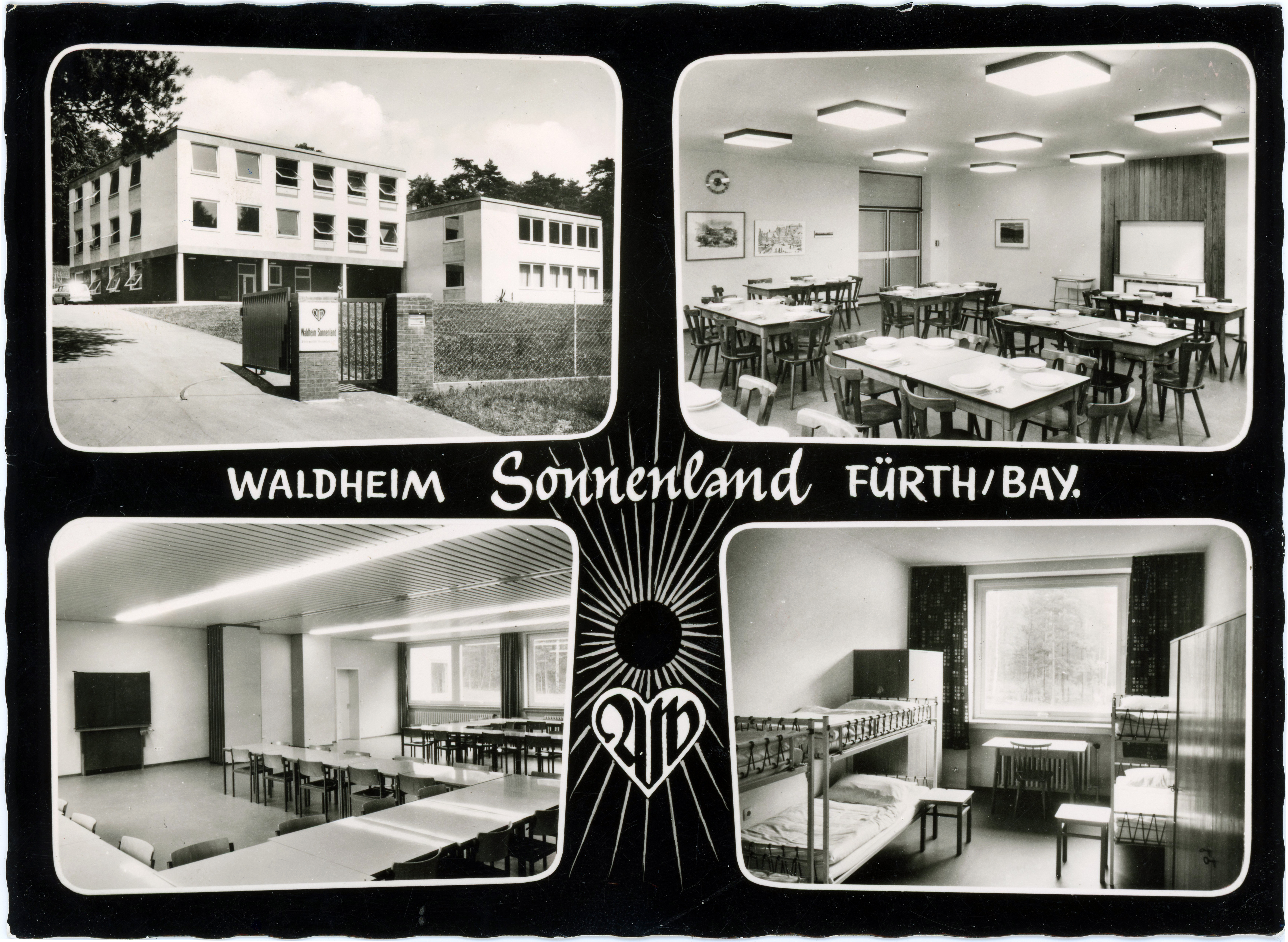 | Beschreibung | Ansichtskarte des von der Fürther AWO betriebenen Waldheim Sonnenland. Historische Postkarte, 1970 | ||