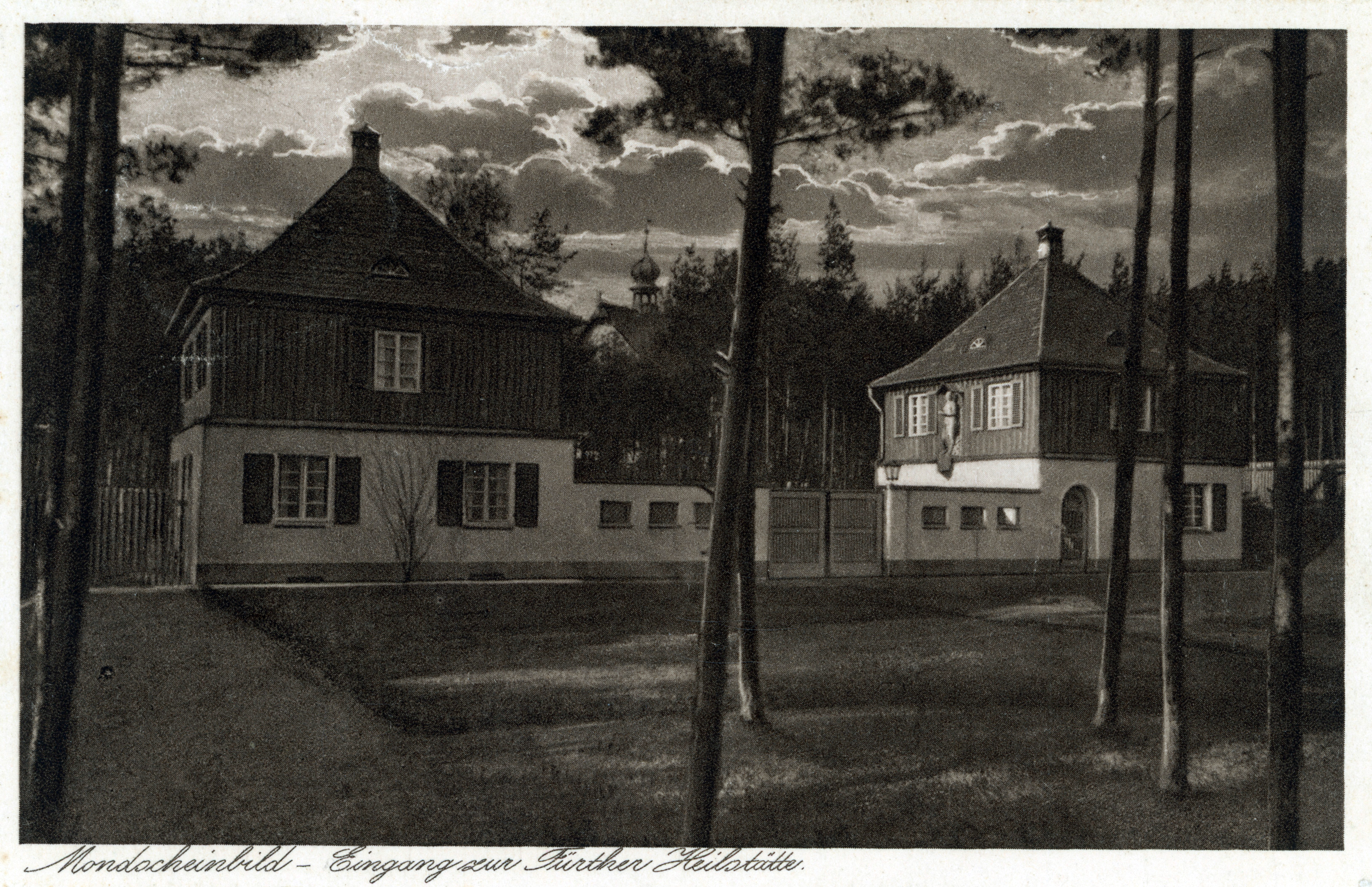 | Beschreibung | Eingangsbereich zum Waldkrankenhaus bei Nacht im Mondenschein, gel. Nov 1914 | ||