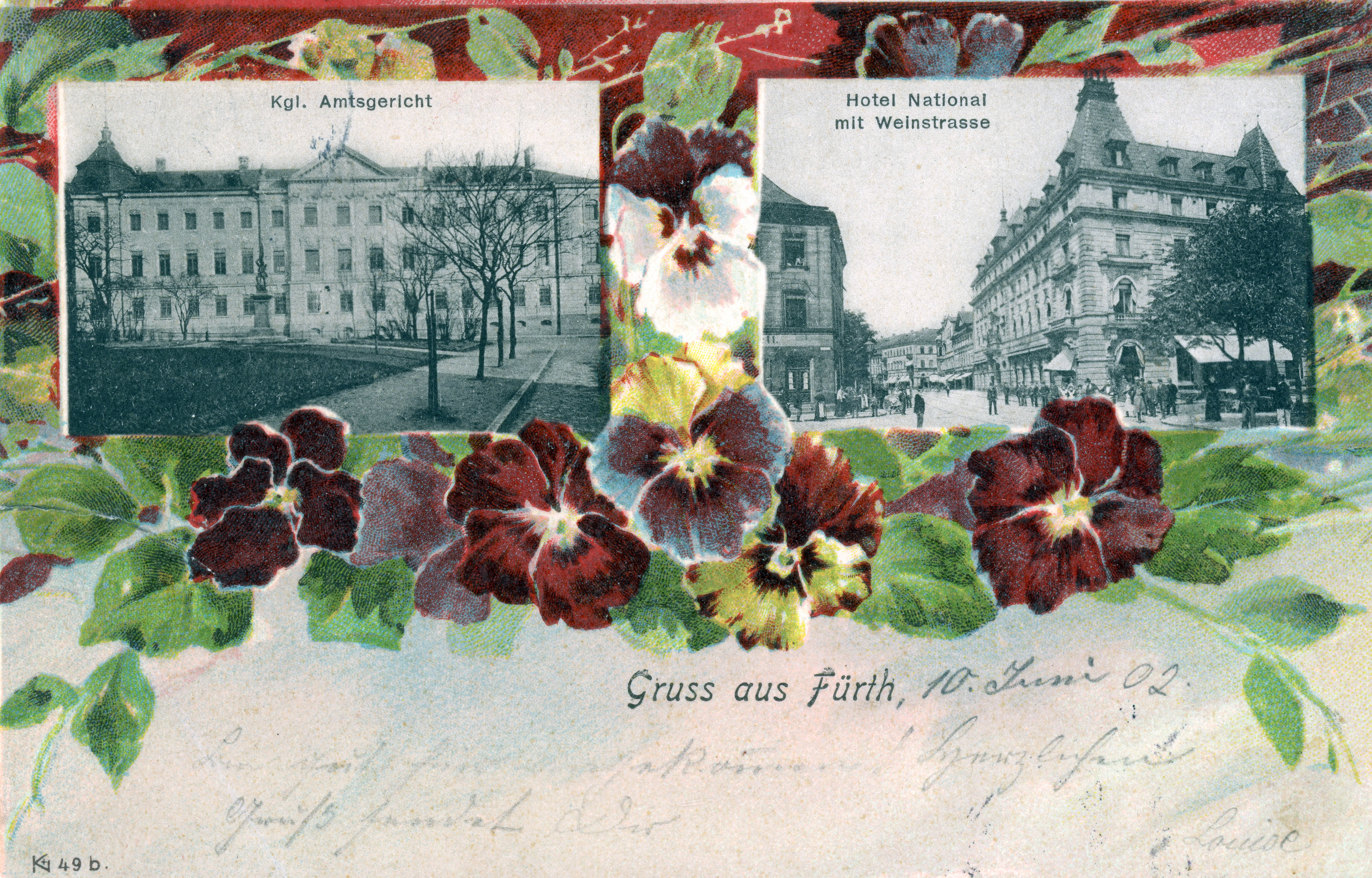 | Dateiinfo (Bild-Unterschrift und Info-Box, automatisch erstellt) | Ansichtskarte mit zwei Motiven - verziert mit Blumen, gel. Jul 1902 Urheber: unbekannt<br>Erstellungsdatum: 10. Juli 1902<br>Lizenz: cc-by-sa-4.0 | ||