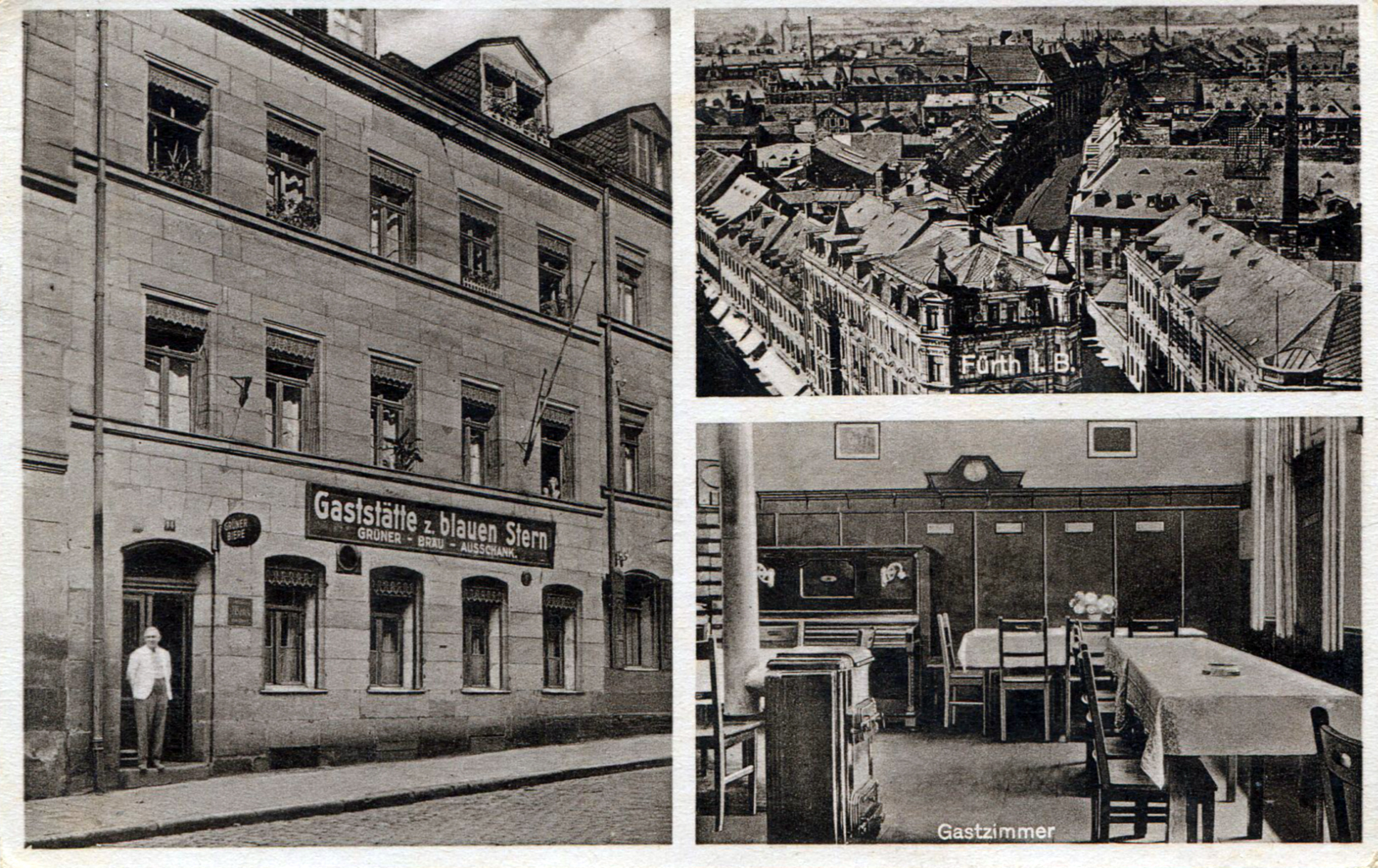 | Beschreibung | Alte Ansichtskarte der Gaststätte Zum blauen Stern in der Ottostraße, gel. 1943 | ||