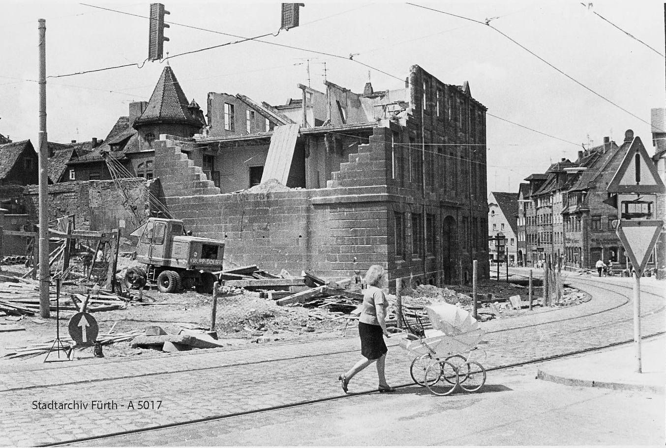 | Beschreibung | Abbrucharbeiten am Geleitshaus in der unteren Königstraße - gegenüber vom Grünen Markt, 1968 | ||