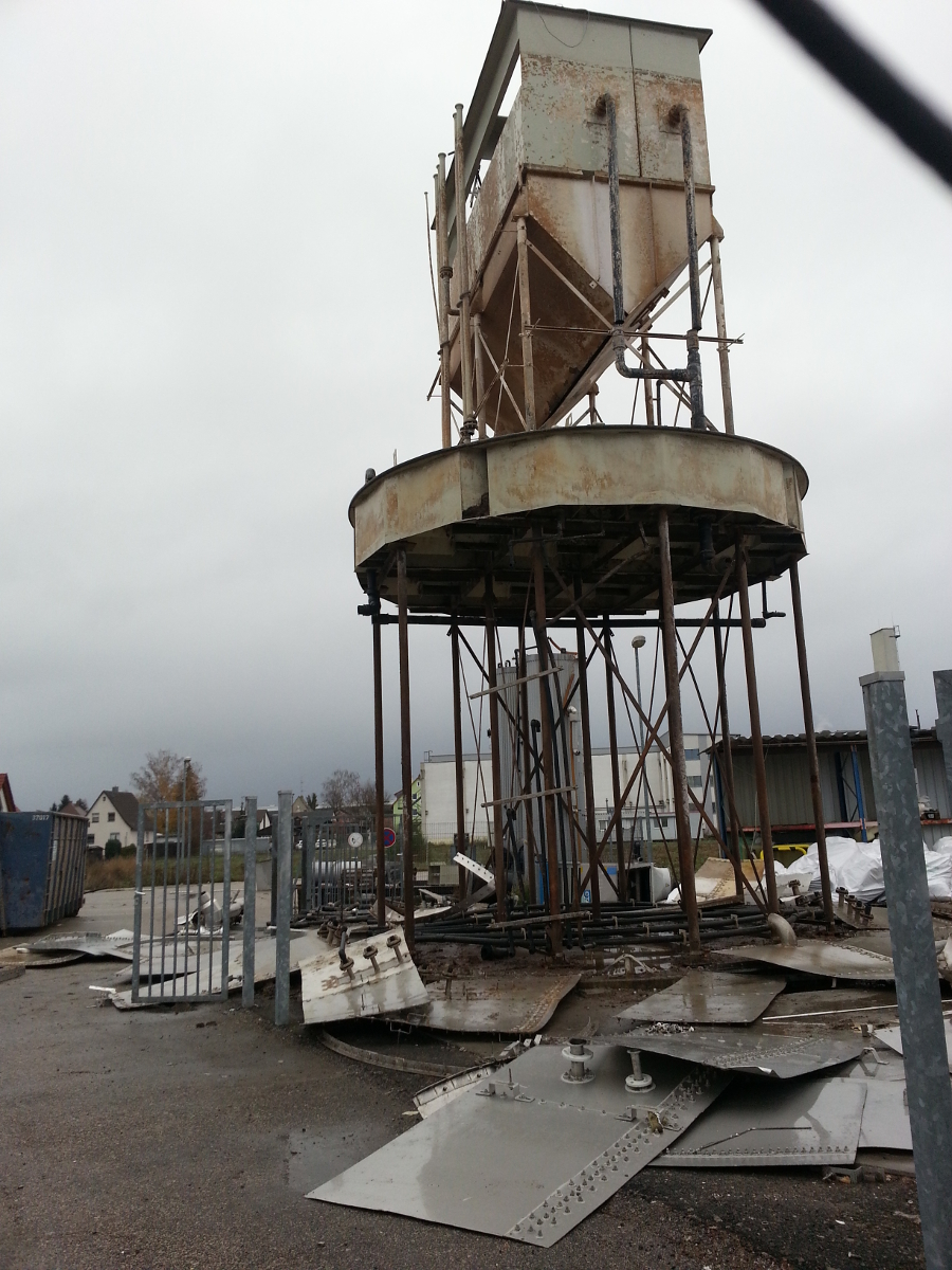 | Beschreibung | Blick von der Hans-Bornkessel-Straße auf das Fabrikgebäude der Fa. Mederer. Im Vordergrund erste Abrissarbeiten an der Kläranlage, Detailaufnahme | ||