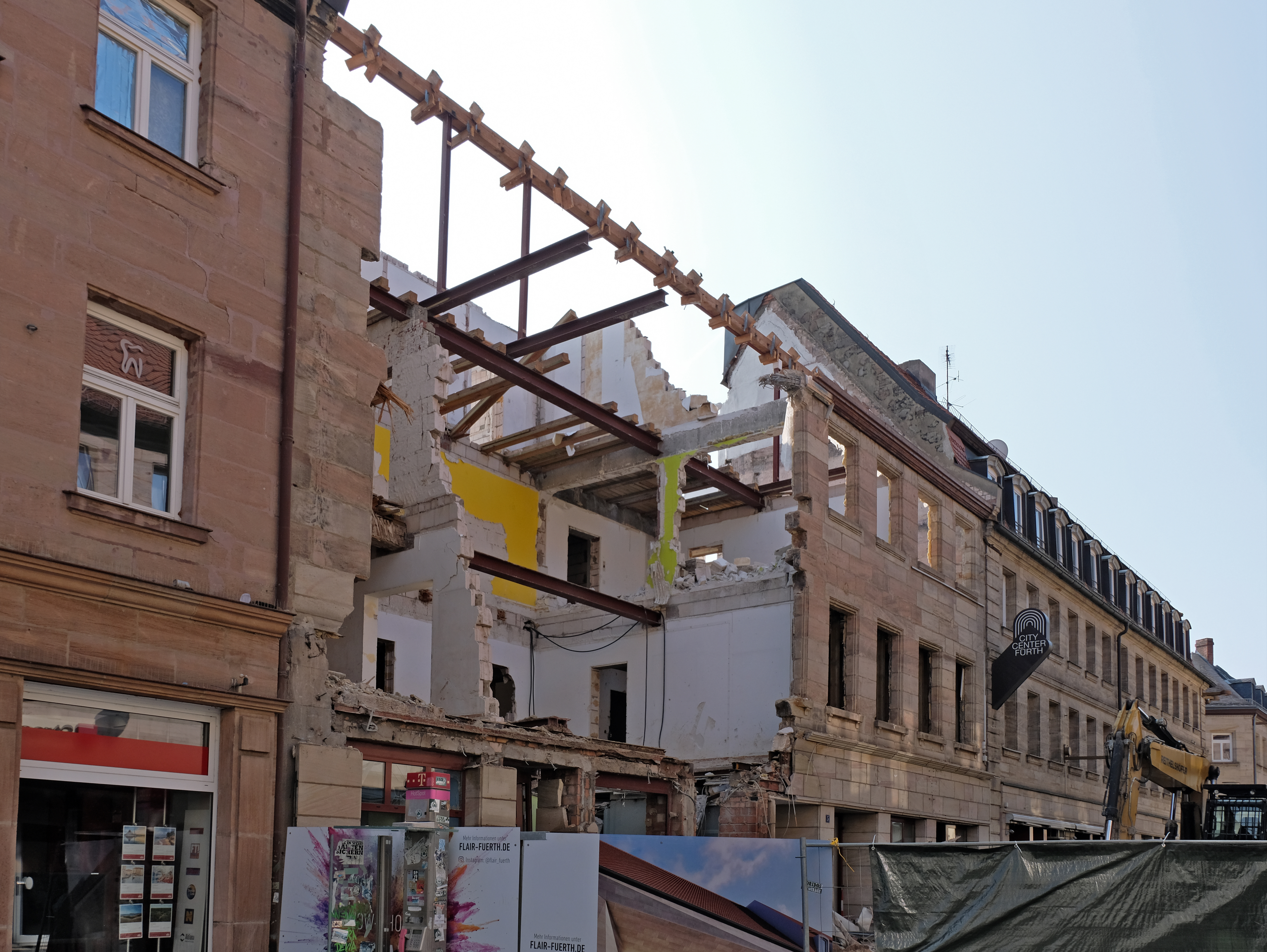 | Beschreibung | Abrissarbeiten an der Schwabacher Straße 5, ehem. Eingang zum City-Center, Mai 2019 | ||