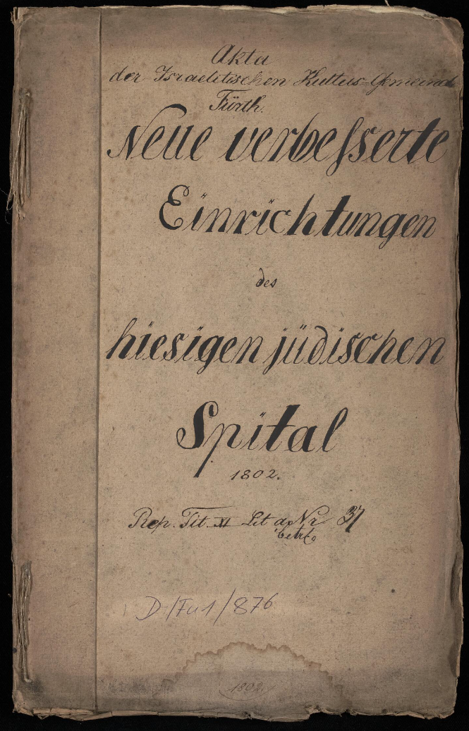 | Dateiinfo (Bild-Unterschrift und Info-Box, automatisch erstellt) | Akte „Verbesserung der Hospitalausstattung und seiner Einrichtung“ Urheber: Israelitische Kultusgemeinde Fürth<br><br>Lizenz: CC BY-SA 3.0 | ||