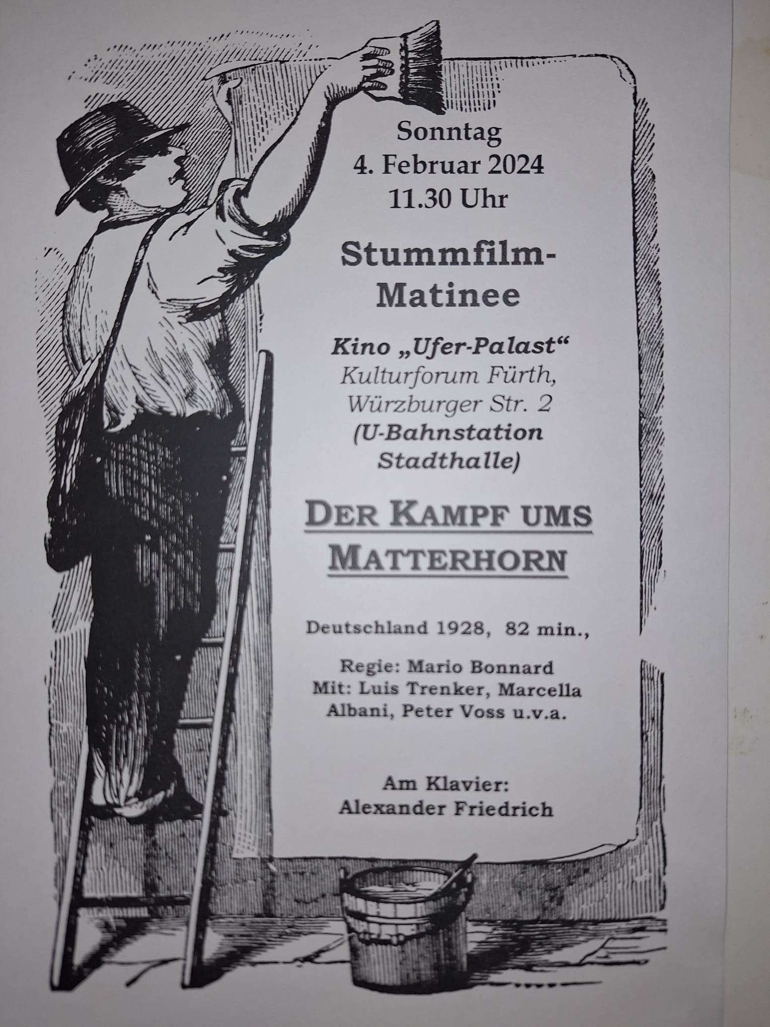 | Beschreibung | Stumm-Film-Vorstellung mit Klavierbegleitung durch Alexander Friedrich im Uferpalast, Feb. 2024 | ||