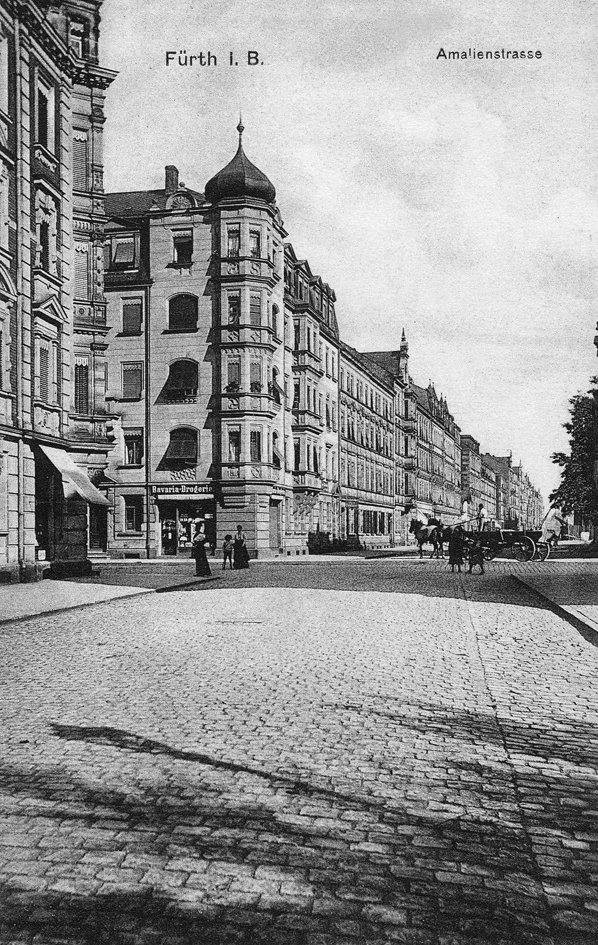 | Beschreibung | Schwabacher Straße/Ecke Amalienstraße - Ansichtskarte, gelaufen 1906 | ||