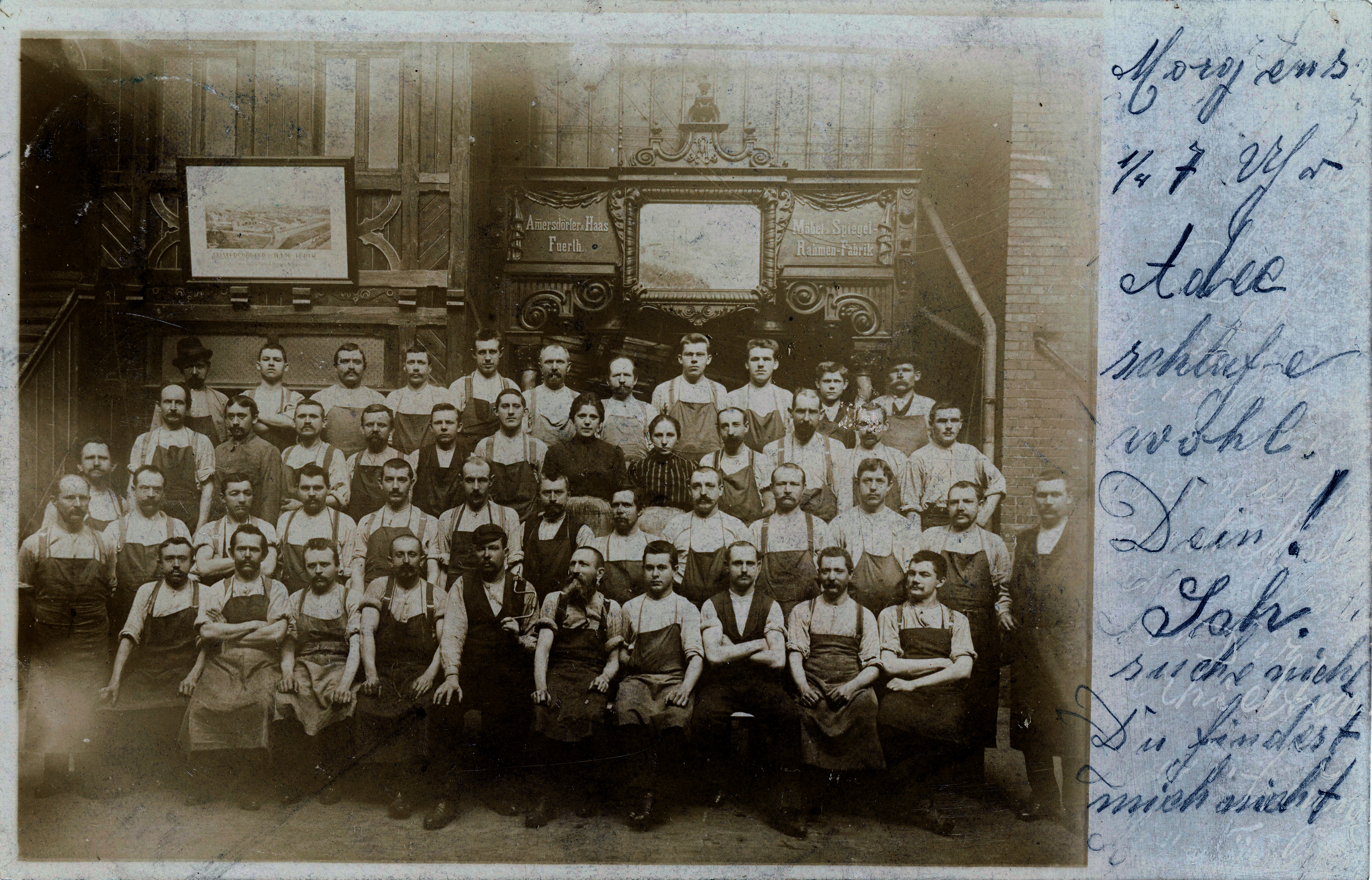 | Beschreibung | Belegschaft der Möbel- und Spiegelfabrik Ammersdörfer und Haas, gel. 1904 | ||