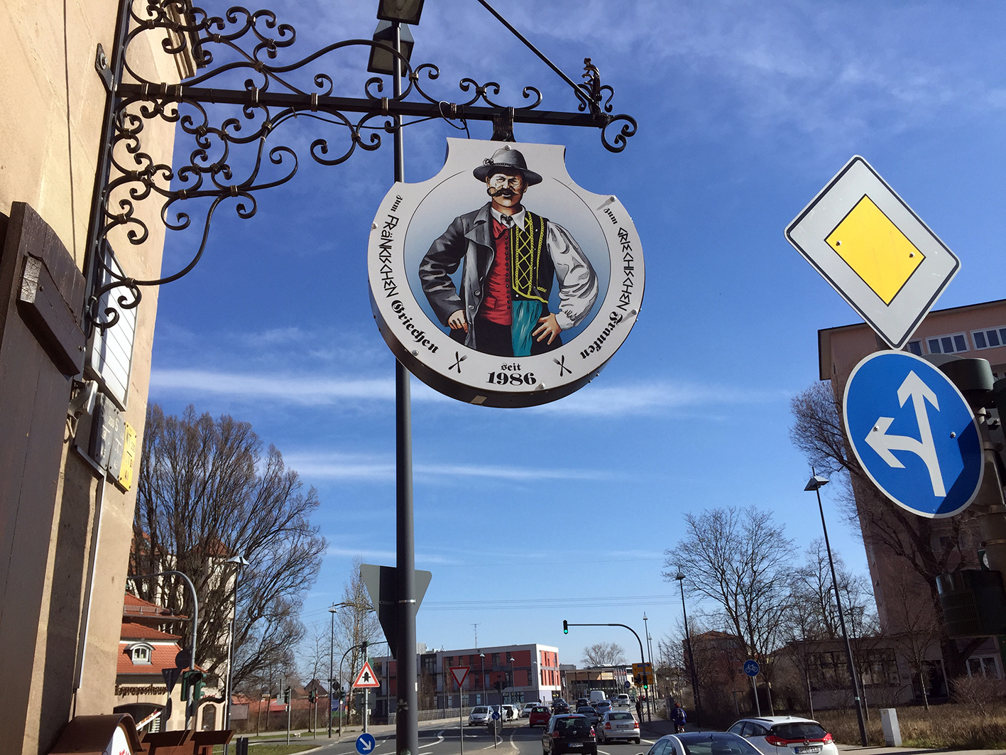 BeschreibungWerbeausleger der Gaststätte Amm´sche Wirtschaft mit König Otto von Griechenland, Jan. 2017