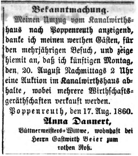 | Beschreibung | Anzeige im Fürther Tagblatt vom 17. August 1860 | ||