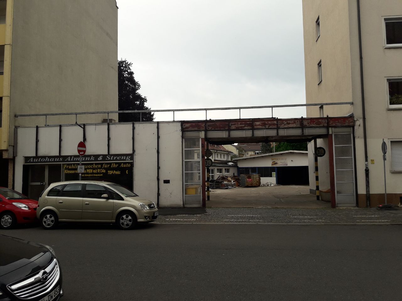 | Beschreibung | Beginnende Abbrucharbeiten auf dem ehemaligen Werksgelände des Autohauses Almank & Streng | ||