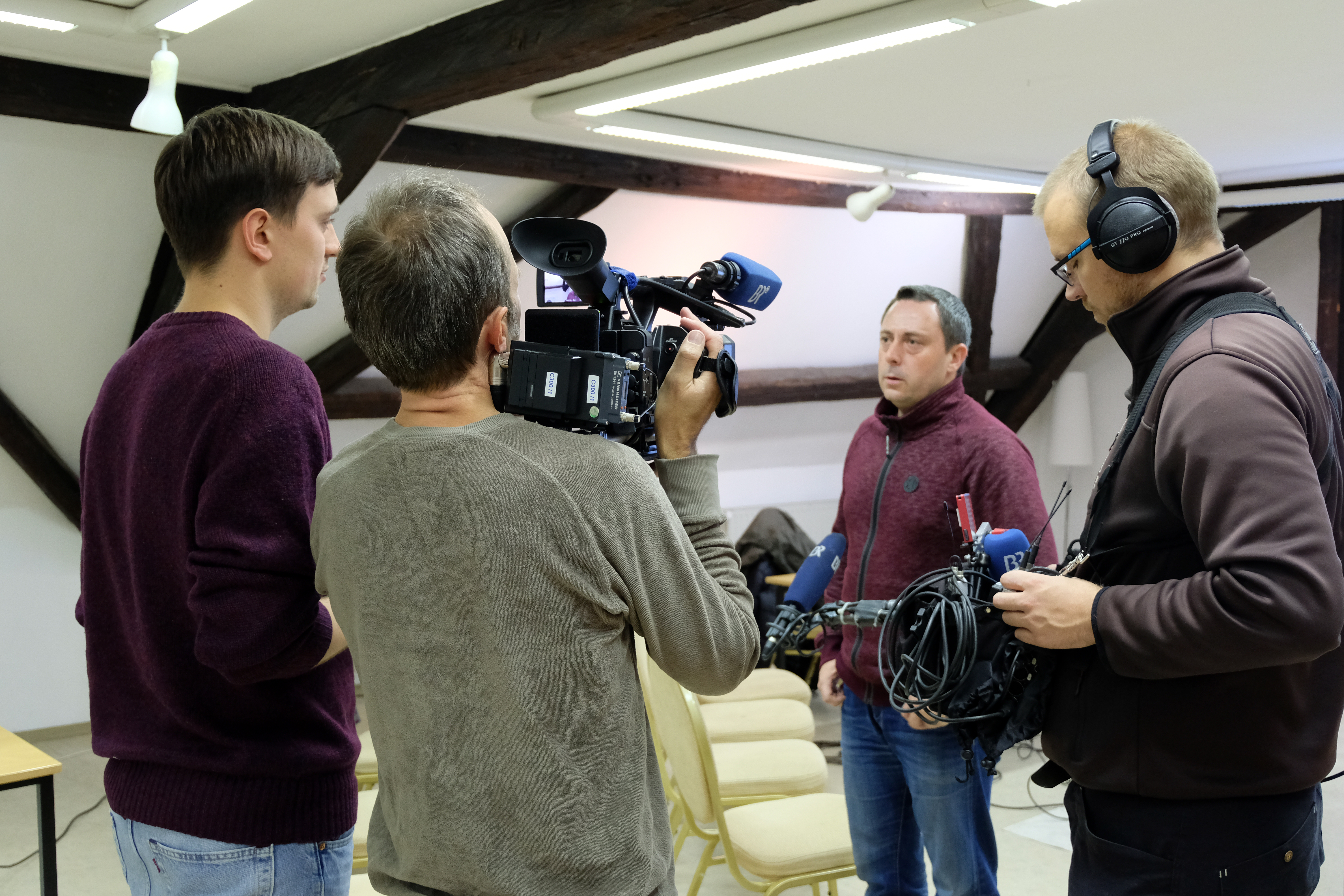 Dreharbeiten des Bay. Fernsehens über FürthWiki, Nov. 2019 Urheber: Kamran Salimi<br>Erstellungsdatum: 27. November 2019<br>Lizenz: cc-by-sa-3.0