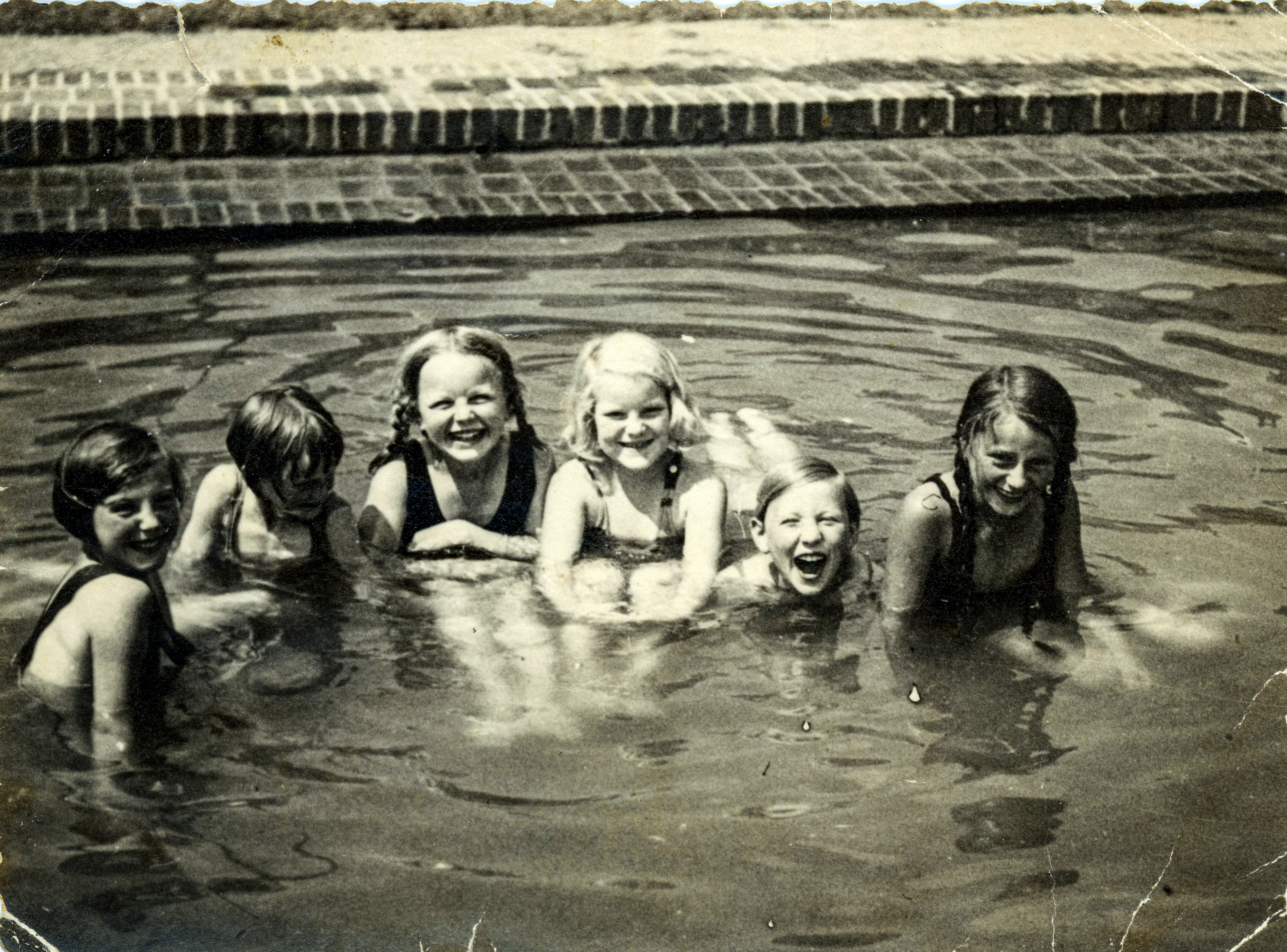 | Beschreibung | Badende Kinder aus dem Espan, zweite von links: Hedwig Gellinger, ca. 1933 | ||