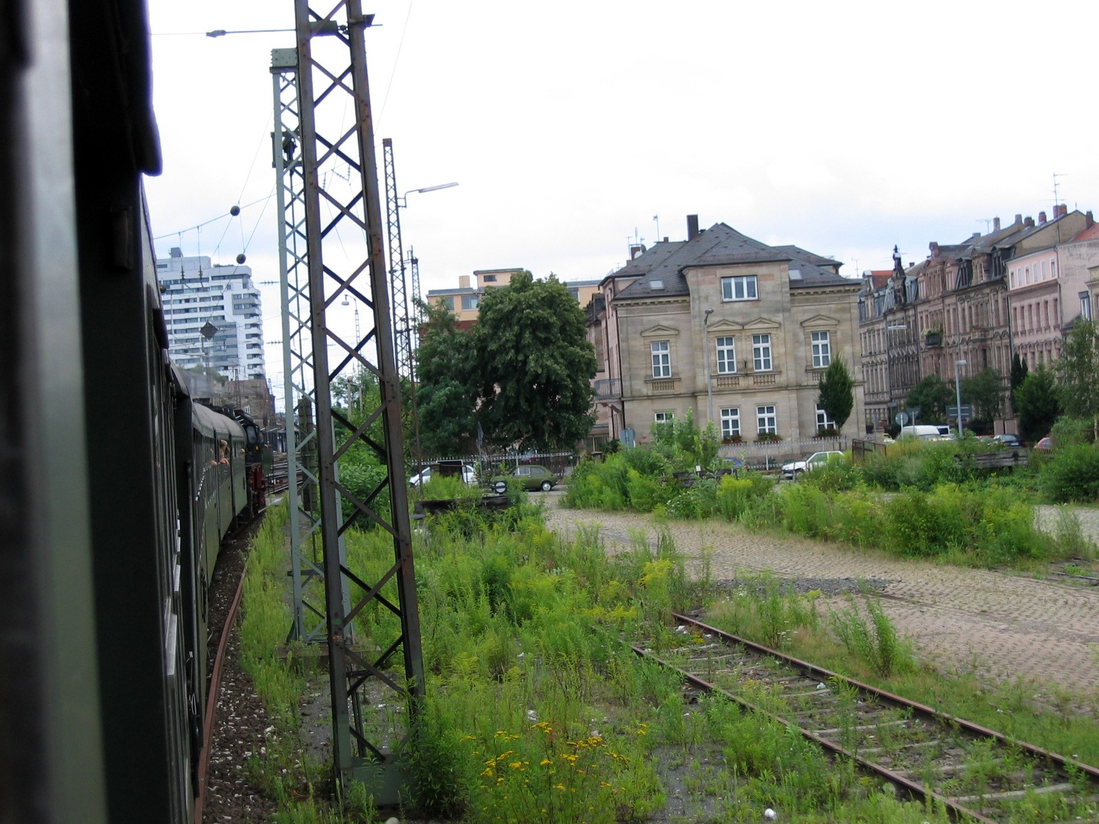 | Beschreibung | Dampflok-Sonderfahrt Fürth – Cadolzburg, 2007 - am Ladehof Ottostraße vor dem jetzt geschlossenen Bahnübergang Ottostraße. Bildmitte Anwesen Karolinenstraße 1. | ||