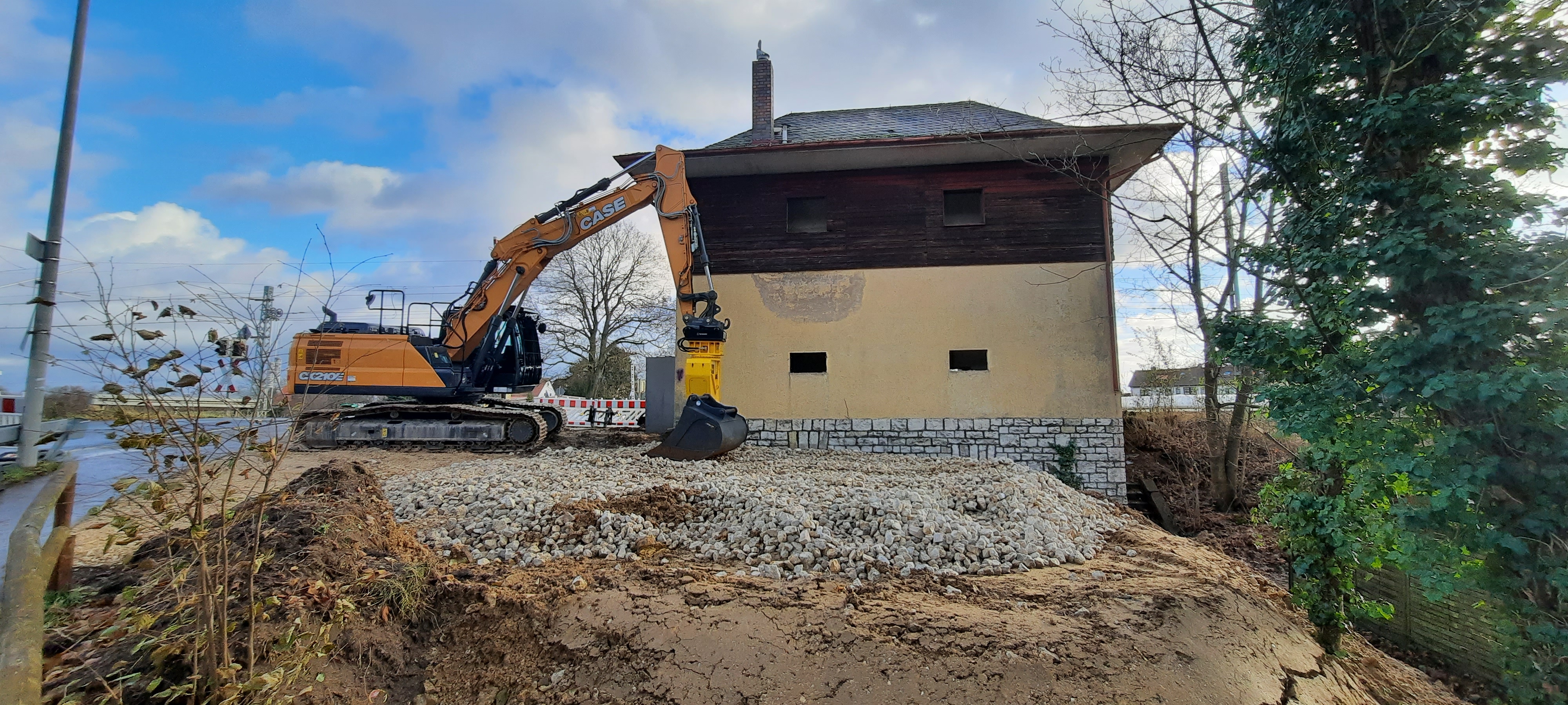 Abriss des schon lange stillgelegten Stellwerkes 2 am Bahnhof Vach und Bahnübergang nach Herboldshof ... Abriss des schon lange stillgelegten Stellwerkes 2 am Bahnhof Vach und Bahnübergang nach Herboldshof im Dezember 2023.<br>Urheber: Michael Smolarczik<br>Erstellungsdatum: 11. Dezember 2023<br>Lizenz: cc-by-sa-3.0