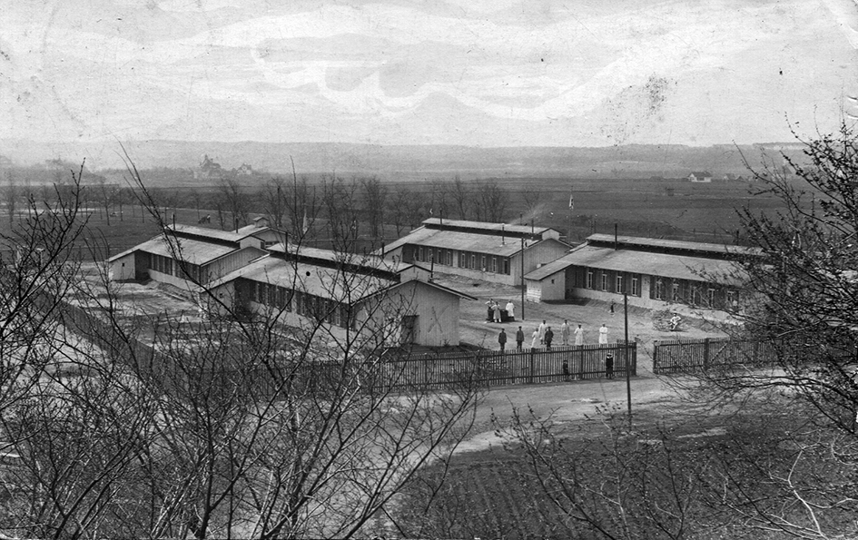 | Dateiinfo (Bild-Unterschrift und Info-Box, automatisch erstellt) | Kriegslazarett an der Bamberger Bahnlinie, Postkarte vom 26. April 1915. Im Hintergrund sind der ... Kriegslazarett an der Bamberger Bahnlinie, Postkarte vom 26. April 1915. Im Hintergrund sind der Eichenhain und einzelne Gebäude der Villenkolonie zu erkennen.<br>Urheber: unbekannt<br>Erstellungsdatum: 26. April 1915<br>Lizenz: cc-by-sa-3.0 | ||
