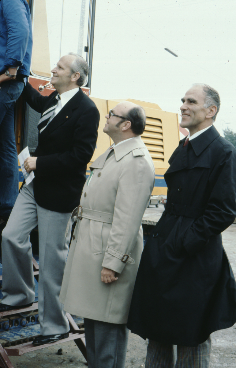 | Beschreibung | Baubeginn U-Bahn Fürth, Festakt an der Jakobinenstraße, 9. Juli 1979, im Bild links Kurt Scherzer, in der Mitte Willy Prölß, rechts der Fürther Stadtbaurat Wolfgang Schneider | ||