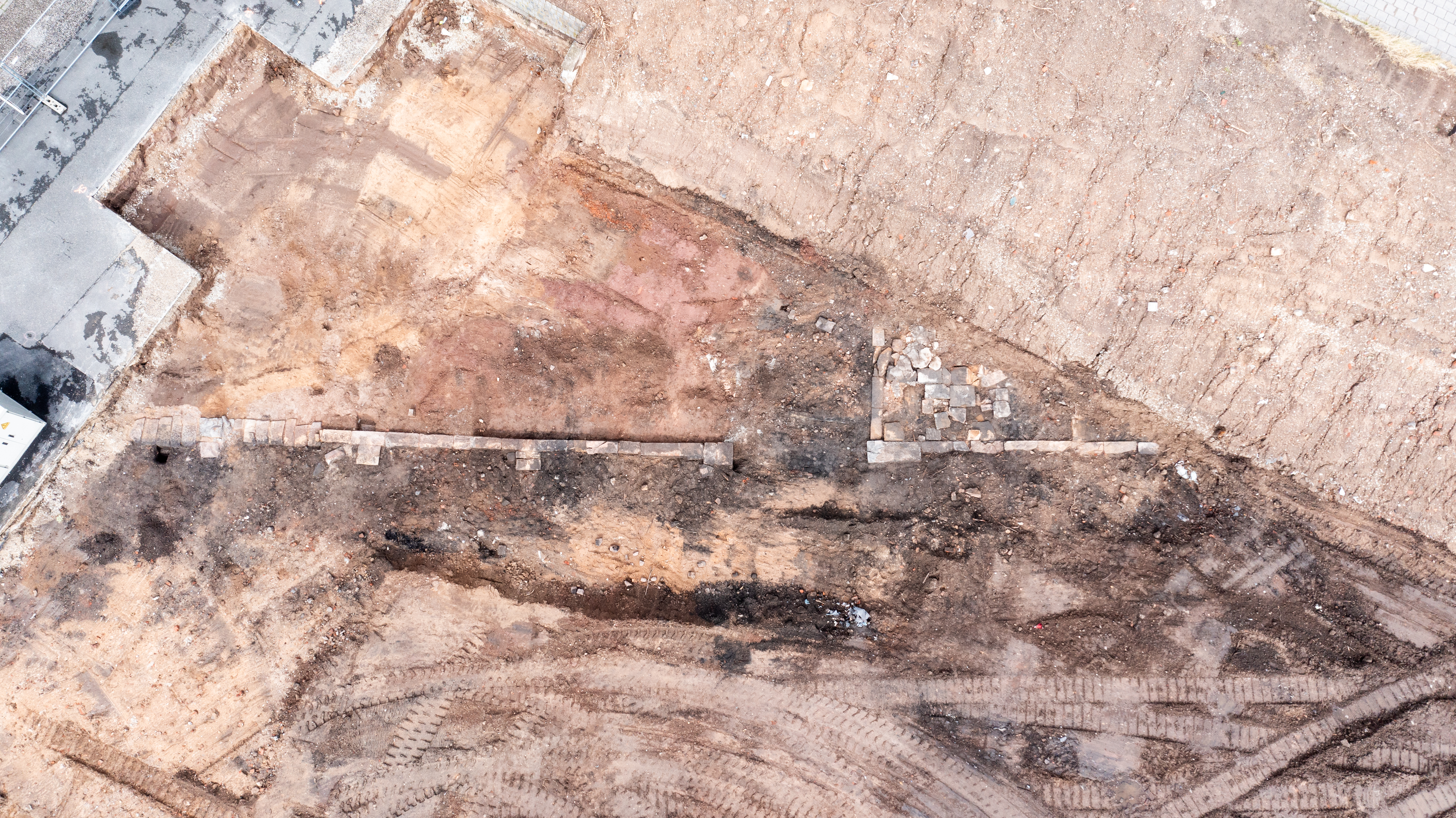 | Beschreibung | Aufnahme von den Bauarbeiten auf dem Areal der Wolfsgrubermühle für den Neubau des Heinrich-Schliemann-Gymnasiums - Archäologischer Fund - vermutlich ehem. Gartenmauerreste des Schildknecht'schen Anwesens (Mühlstr. 11), Juli 2024 | ||