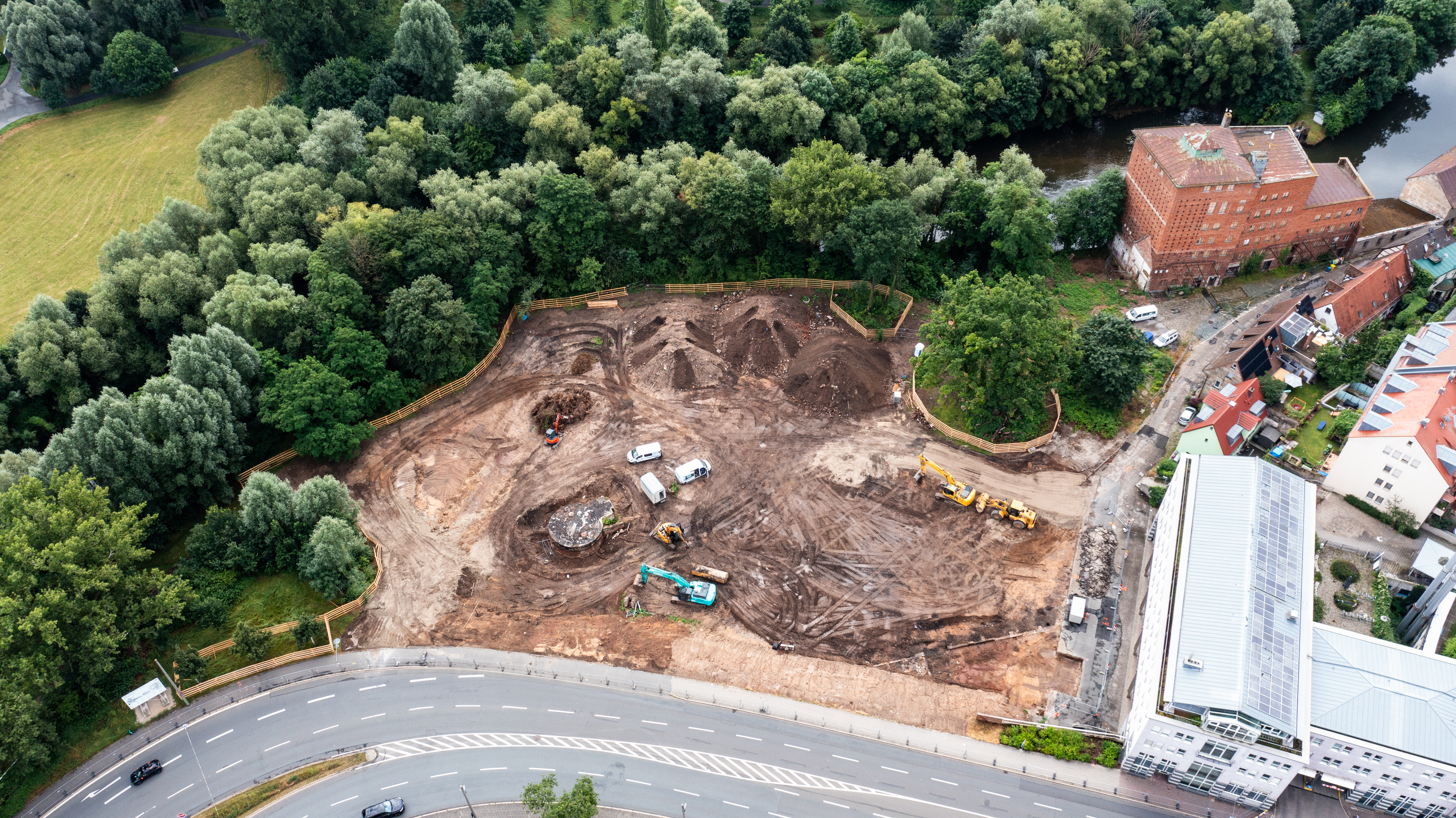 | Beschreibung | Aufnahme von den Bauarbeiten auf dem Areal der Wolfsgrubermühle für den Neubau Heinrich-Schliemann-Gymnasium, Juli 2024 | ||